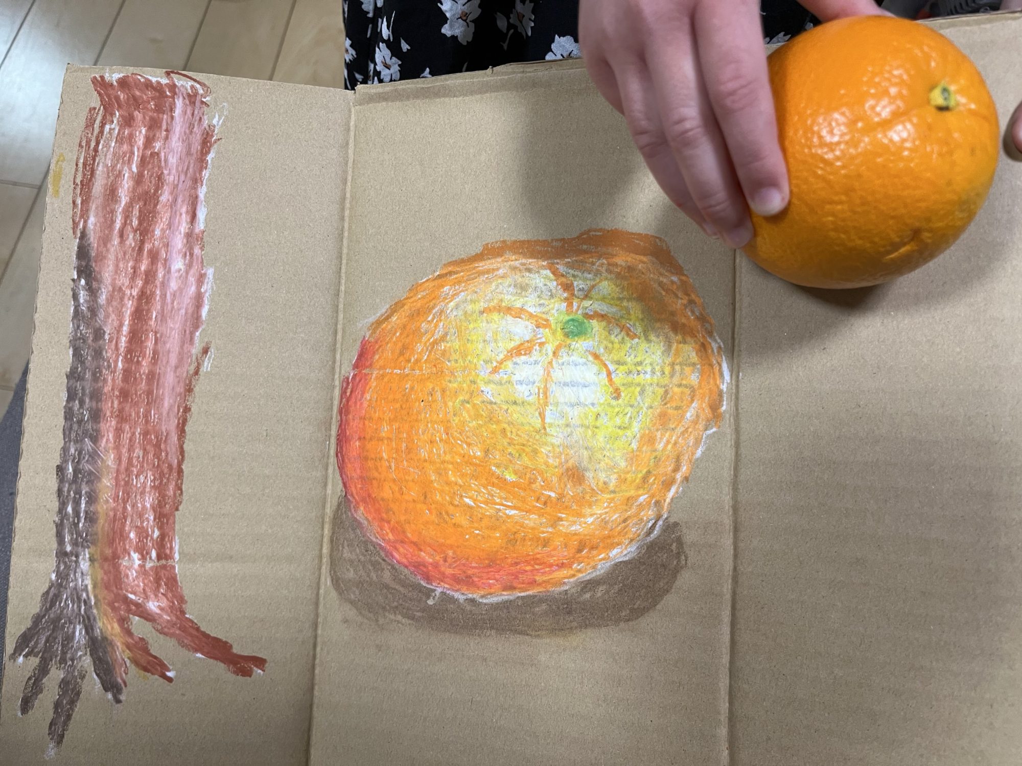 ikedamaki 先生2022年1月31日 9:20 AM Elsaさん、こんにちは! 先日は、オンラインレッスンにご参加いただきありがとうございました。 オレンジの特徴のプリッとしたすじの部分が効いていますね〜 段ボールに合わせた陰の色も、グッドチョイスです ログインして返信する ↓