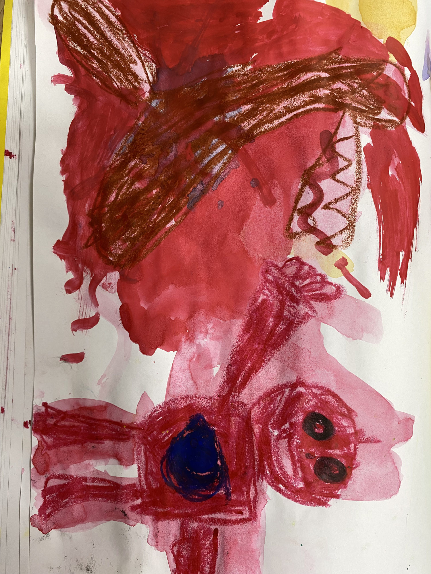 思いつくまま果物を描き、絵が浮かび上がって来ると、スゴーイと言って、楽しそうに書いてました。『ウェット イン ウェット 』もすっかり覚えました。
