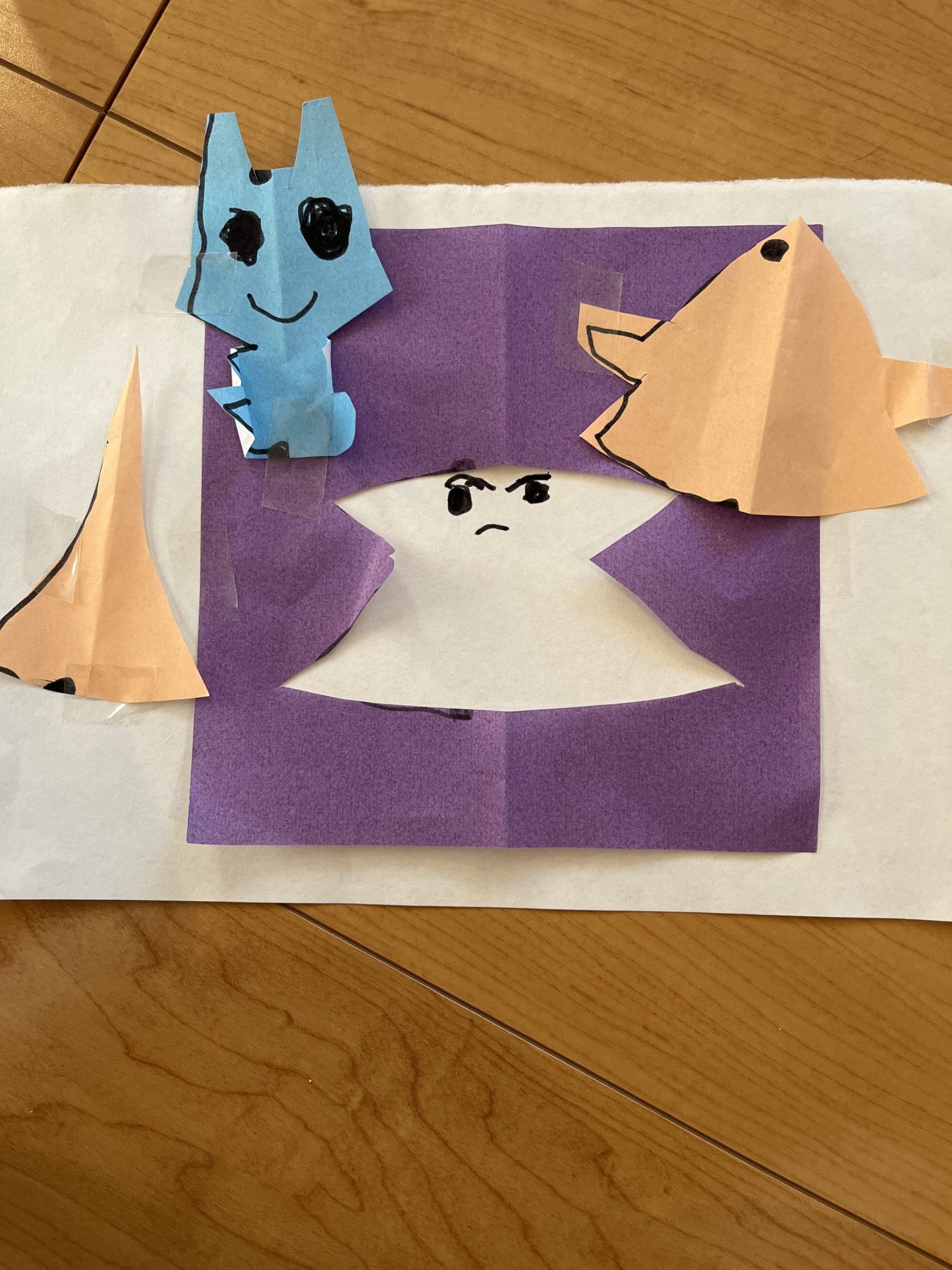 机に大きく広げて制作する様子を画面越しにずっと見ていたよ〜