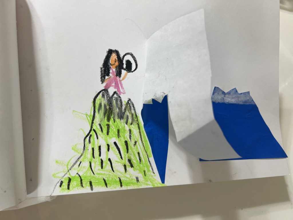 富士山を登っている様子、めくったらなんと頂上でピクニックに絵が動いていく様子に感動です!
