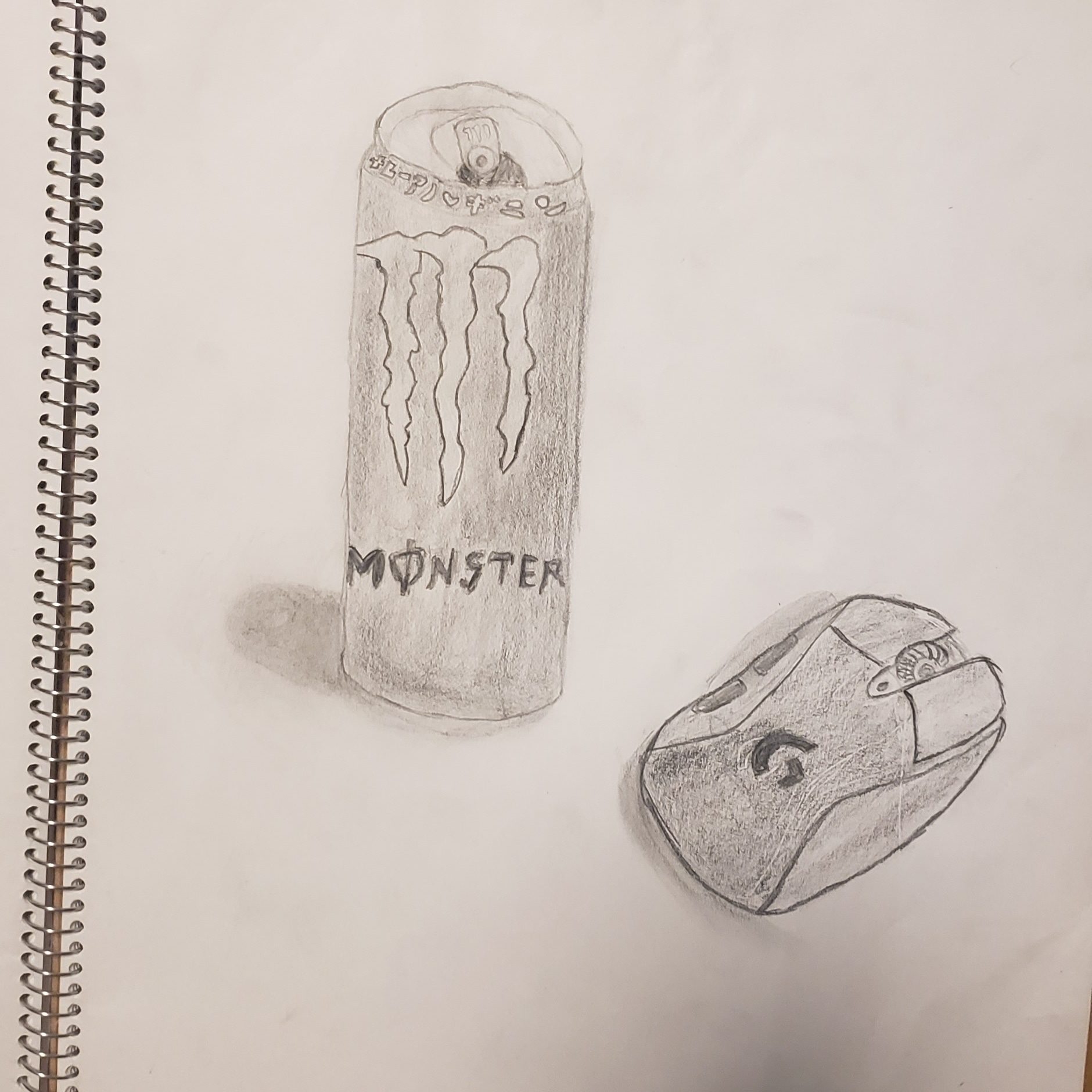 缶のレタリング(文字)・マウスの独特な形状が丁寧に描かれているところや、床に落ちている影がリアルなところから、一生懸命モチーフの特徴を追いかける姿勢が作品から伝わってきます。