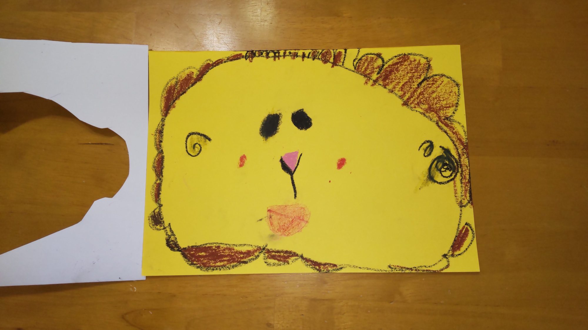 白い紙の穴の大きさに合わせて、ライオンの顔の形を描いたのかな?