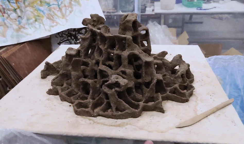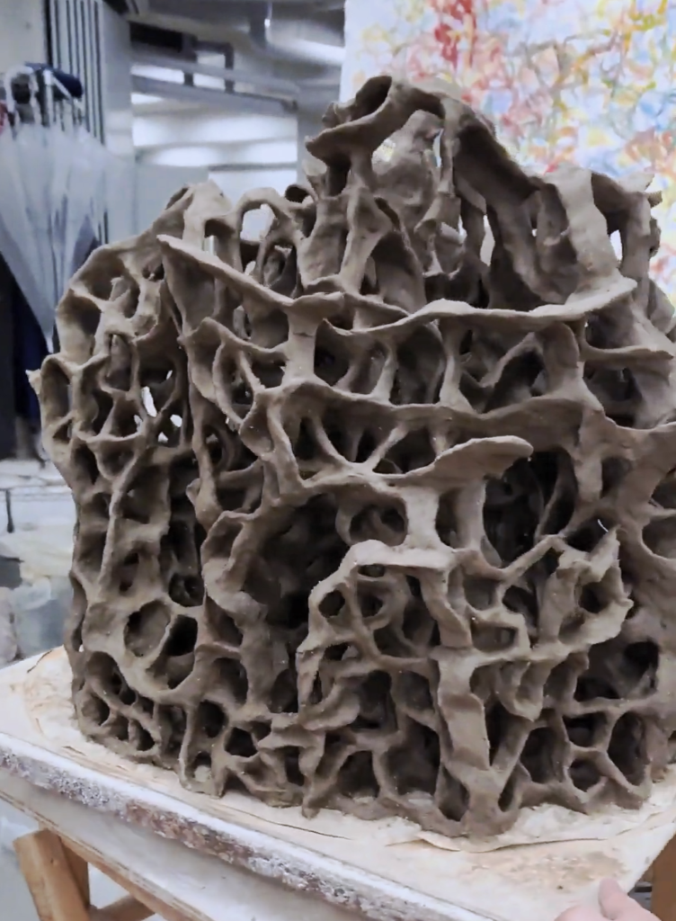 陶の粘土で、下から徐々に繋ぎ合わせて大きくしています〜。