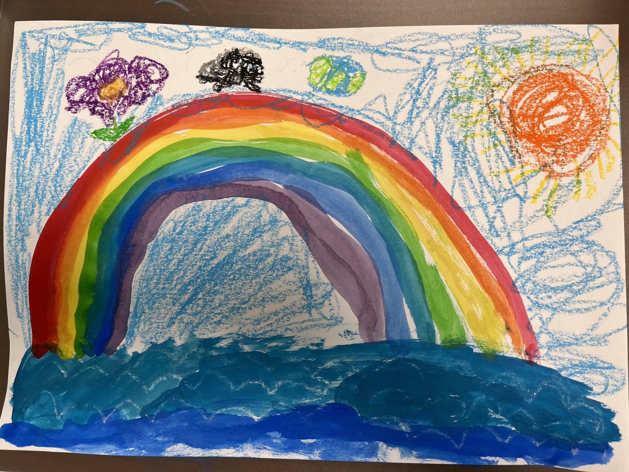 技術面でも、虹がしっかりと塗り分けられ、きれいなアーチをえがいています。腕を安定させて描くことができているんですね。