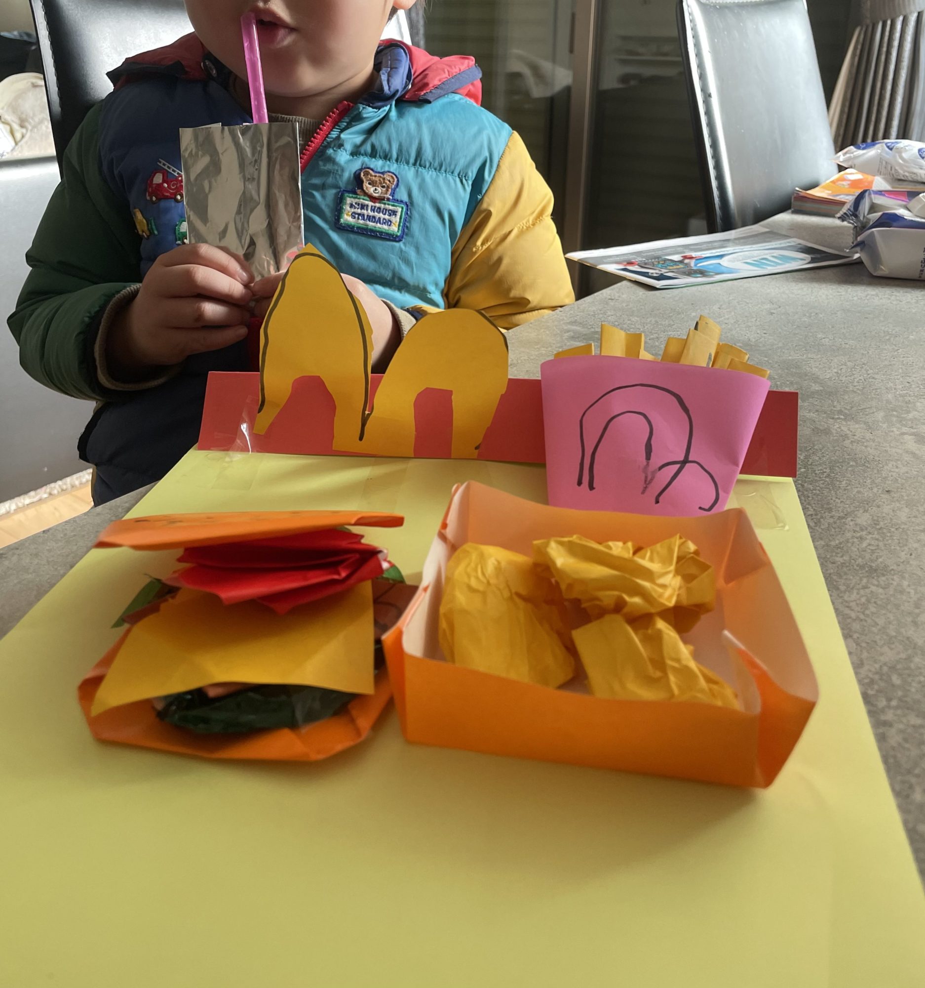 すごい! どれもほんものみたいだ! おみせのおおきなマークもあるし、ハンバーガーもおいしそう!