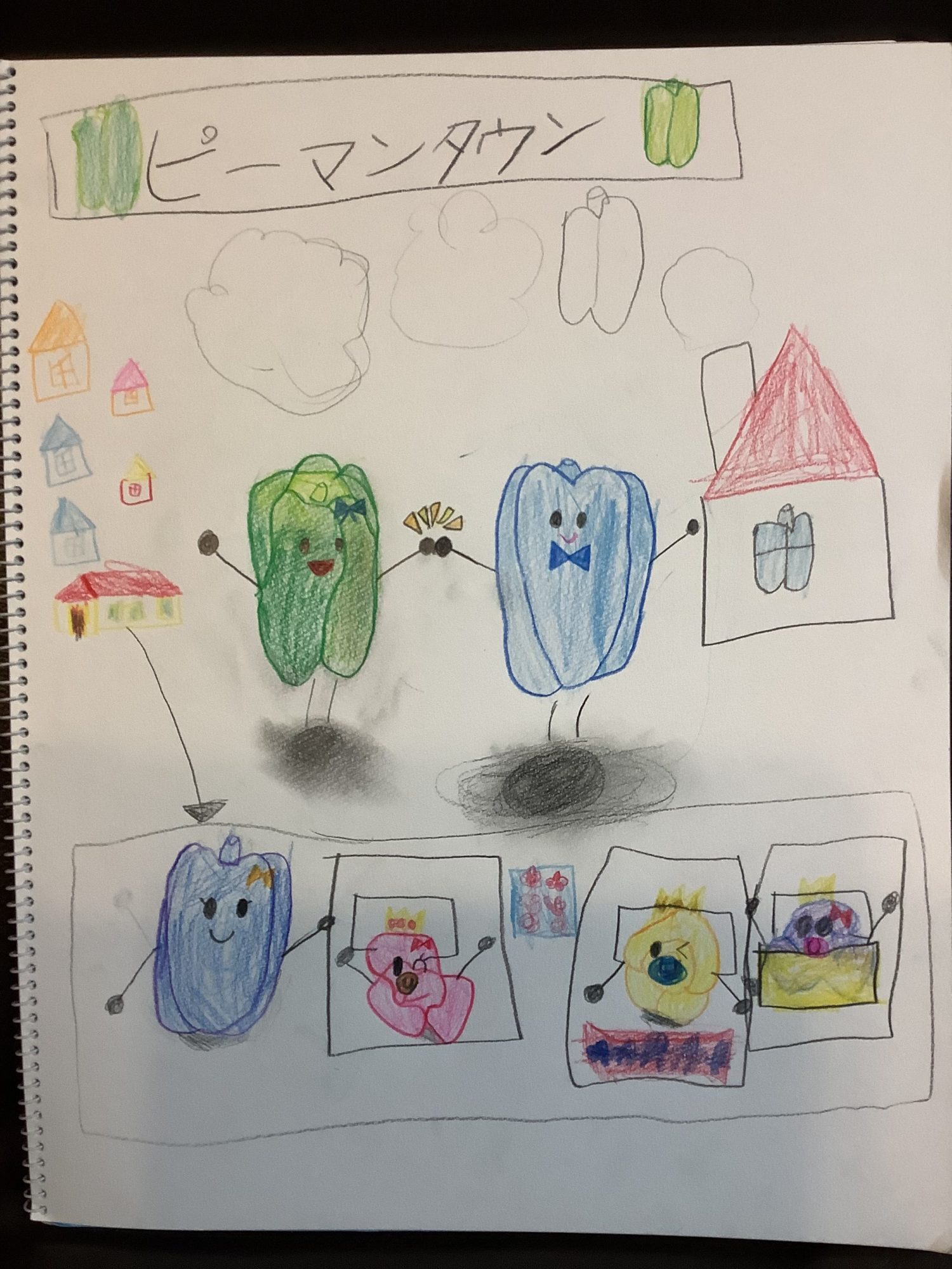 みずほ先生 先生2022年3月9日 9:15 AM みーさん ピーマンがめちゃめちゃかわいいキャラクターになってるね‼️ 色をかけるとそれぞれの性格なども出てくるみたいだね! みんなが楽しく、ピーマンタウンにいる感じがとても素敵です💕 ログインして返信する ↓