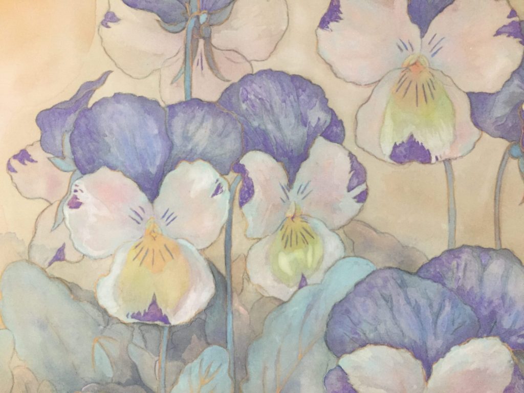ビオラは、まずはデッサンをしてからデッサンを写して、色をつけていきました。 よく見かける花ですが、じっくり描くとこんなにかわいいのか、と愛着がわきました。
