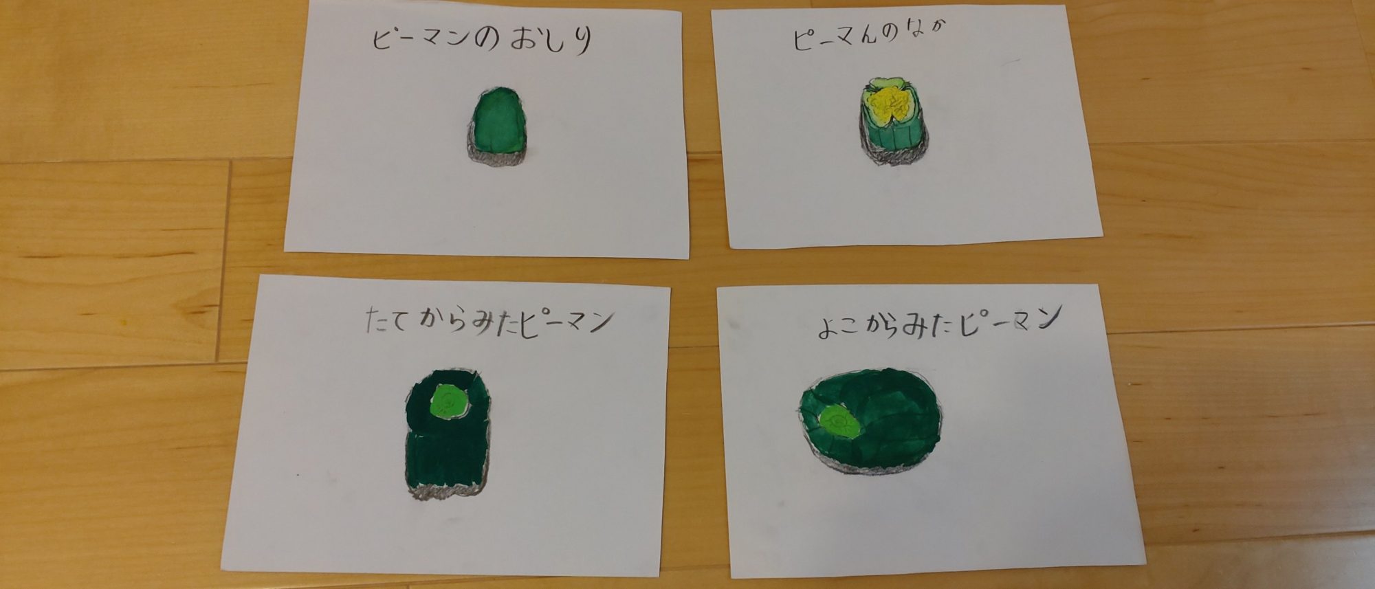 違う野菜やくだものでやってみたり、ピーマンをもっといろいろな角度で観察して追求みたり・・・