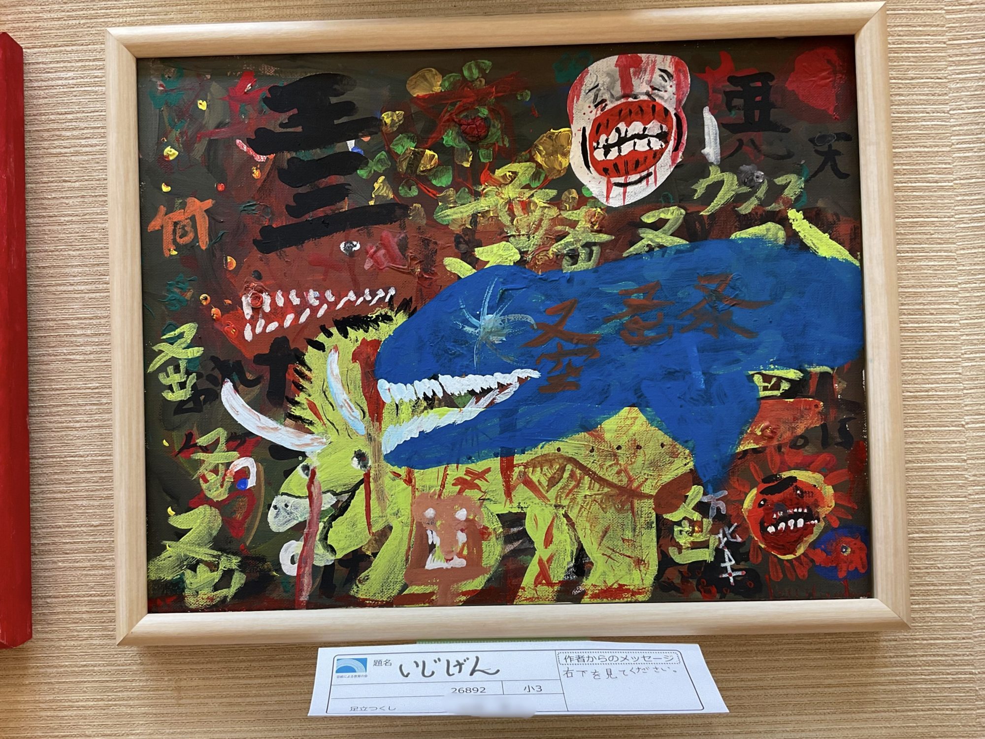 ゆうの先生 先生2022年4月8日 9:09 AM こんにちは〜!☀️ わぁー!なんだか不思議な世界観の作品ですね!😳 色んな生き物がいますね! オリジナルで自分で考えたのかな? 私は後ろの黄色い角の生えている子が好きです! わっ!右下の生き物はなんだろう〜?小さいけど表情に迫力がありますね😖 背景に色んな色を重ねたり混ぜたり、漢字のような不思議な文字が散りばめられていたり、独特な世界観に引き込まれます〜! ログインして返信する ↓
