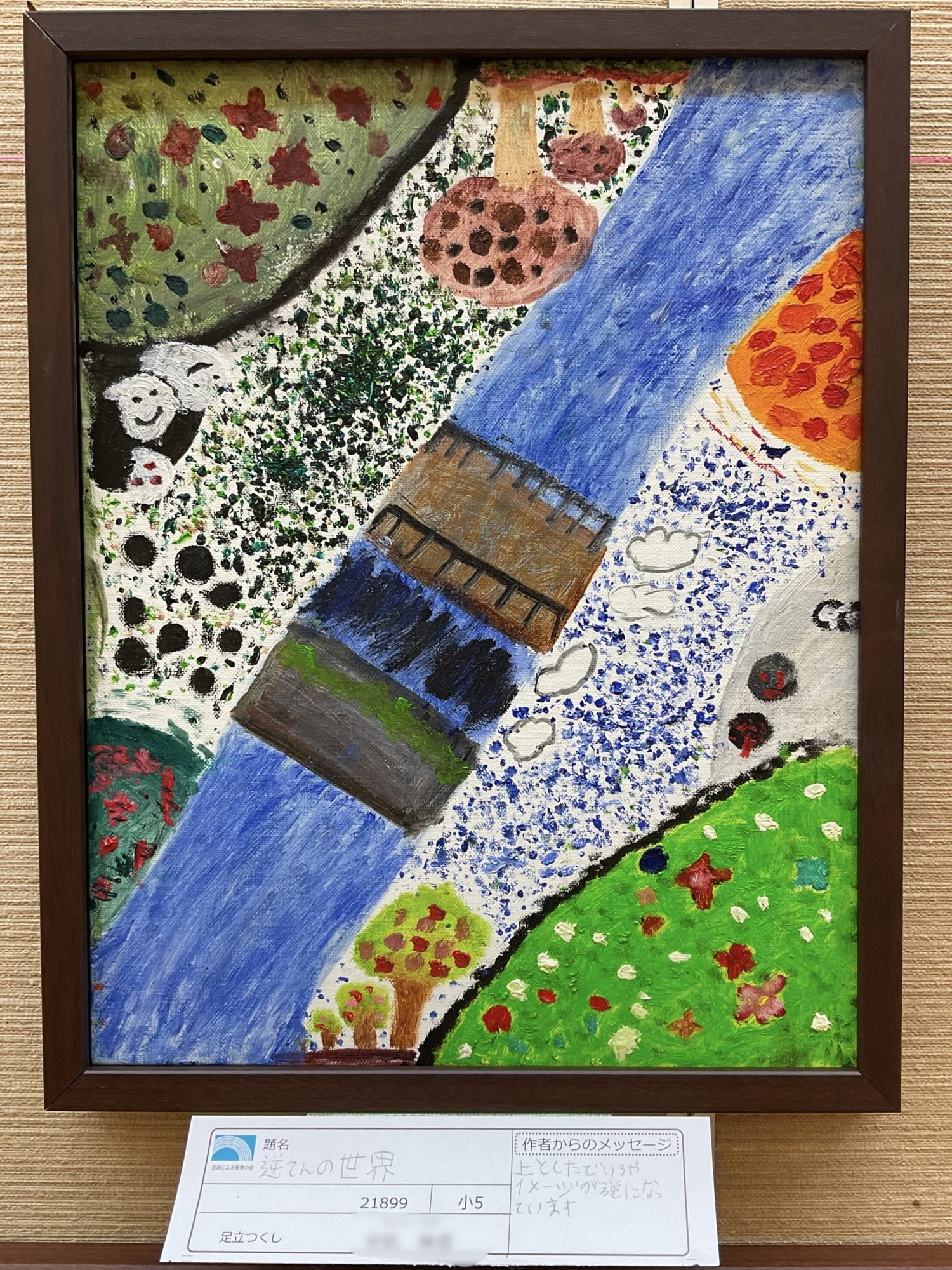 2022年3月15日 9:26 AM こんにちは、上と下で世界が逆転しているなんて、何て発想が素晴らしいんでしょう🤩✨ しかも画面をきっちり上下や左右ではなく斜めに川で分けるなんてかっこいい〜な〜👍 大きな形や細かい形、鮮やかな色やくすんだ色、明るい色や暗い色をうまく使い分けて描かれていて、いろんなストーリーが浮かんでくるとっても興味深いすてきな世界観が伝わってきます❤️ ログインして返信する ↓