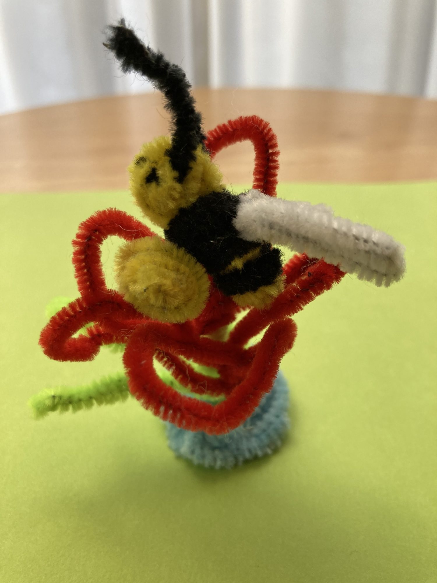 モールで作ったお花とハチです。 お花はハチのおうちになっています。