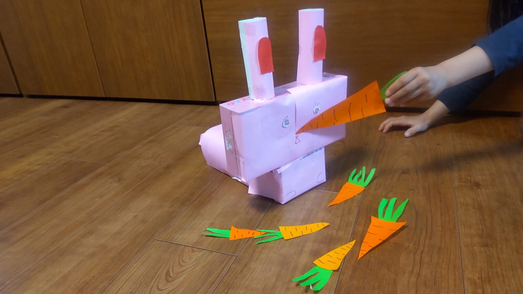 箱に紙を貼り付けて兎さんにしたんだね!四角い兎さんもとっても可愛い💓🥕🥕