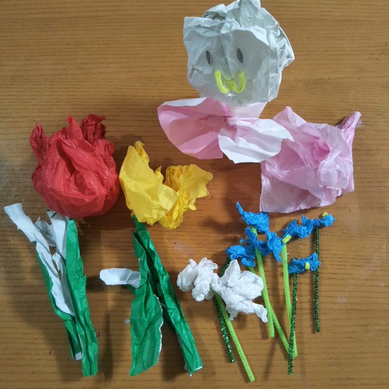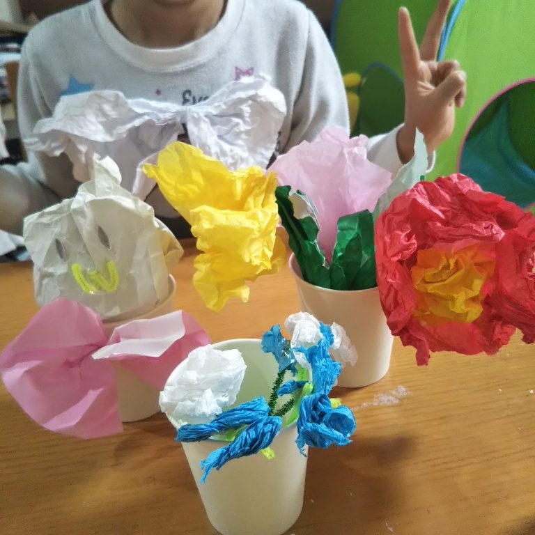 お花紙で、花びらの形とかリアルに作れるんだね!