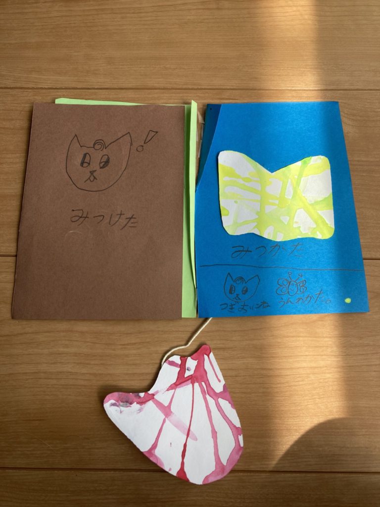 たらした絵の具の模様を見て、ちょうちょを思いついたのかな?本当にちょうちょの羽みたい!