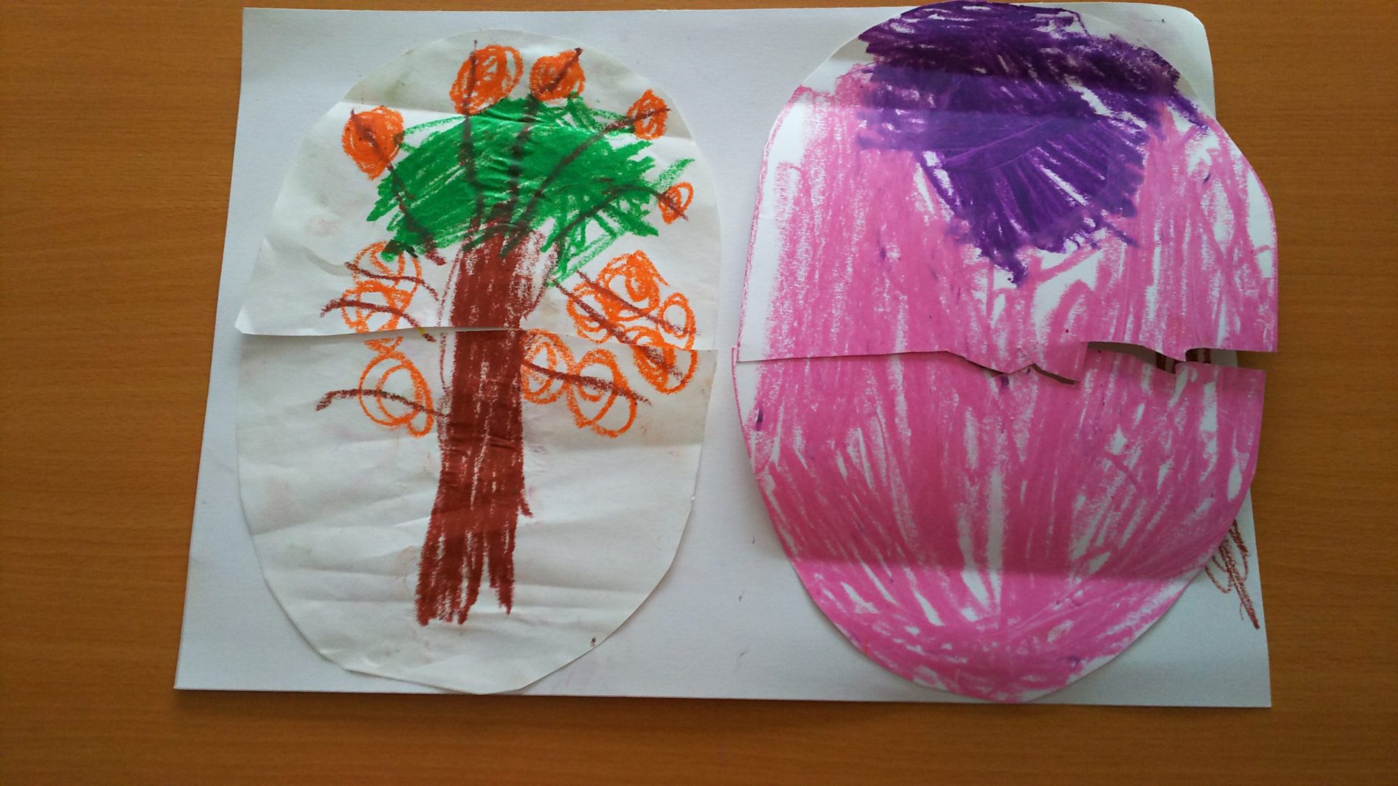 ミカンの木のたまごとピンクのたまごのなかには、それぞれひよこと目と口がない恐竜だそうです。