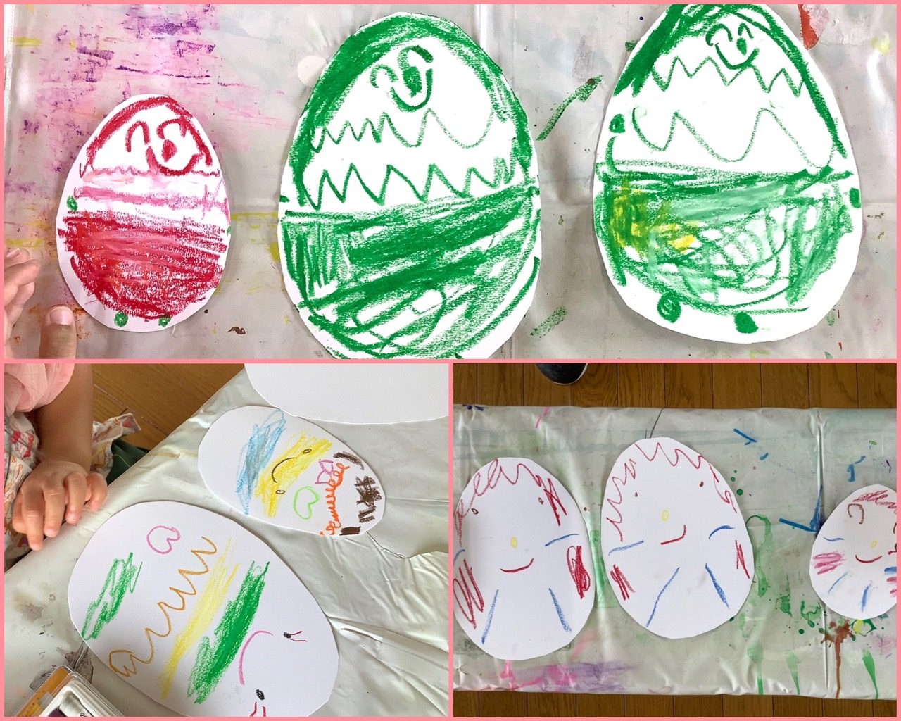 導入に時に、先生がトコトコとたまごを動かしたので たまごちゃんに手足を描いてくれた子もいます。