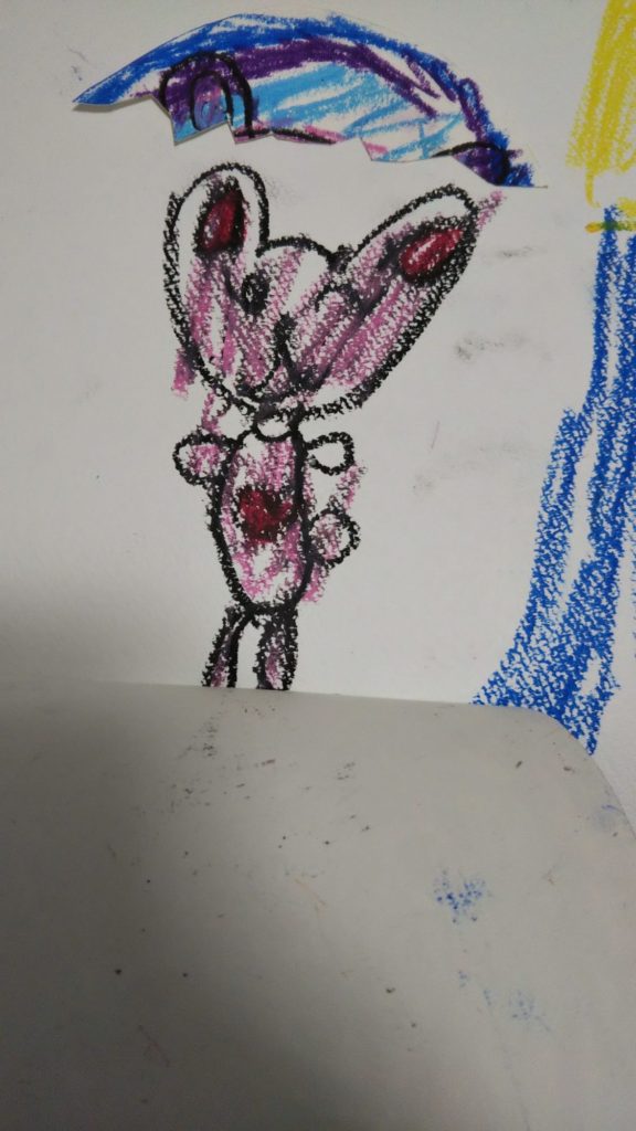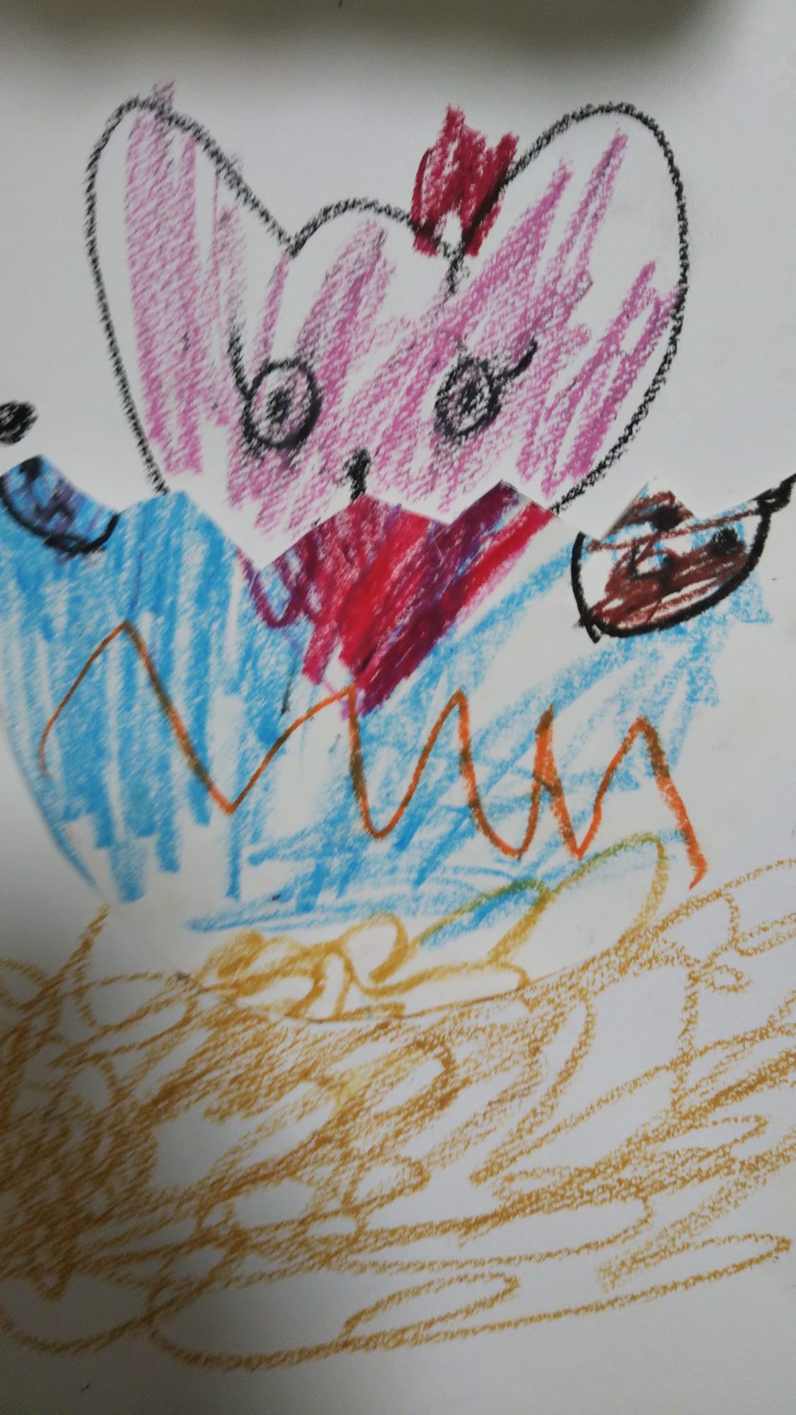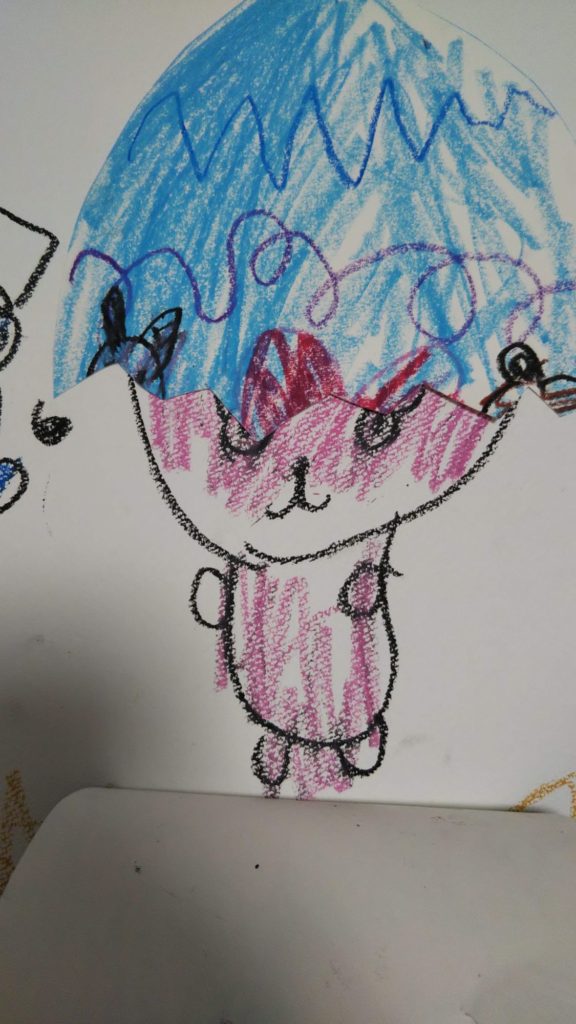 つぎ、はのちゃんが おえかき