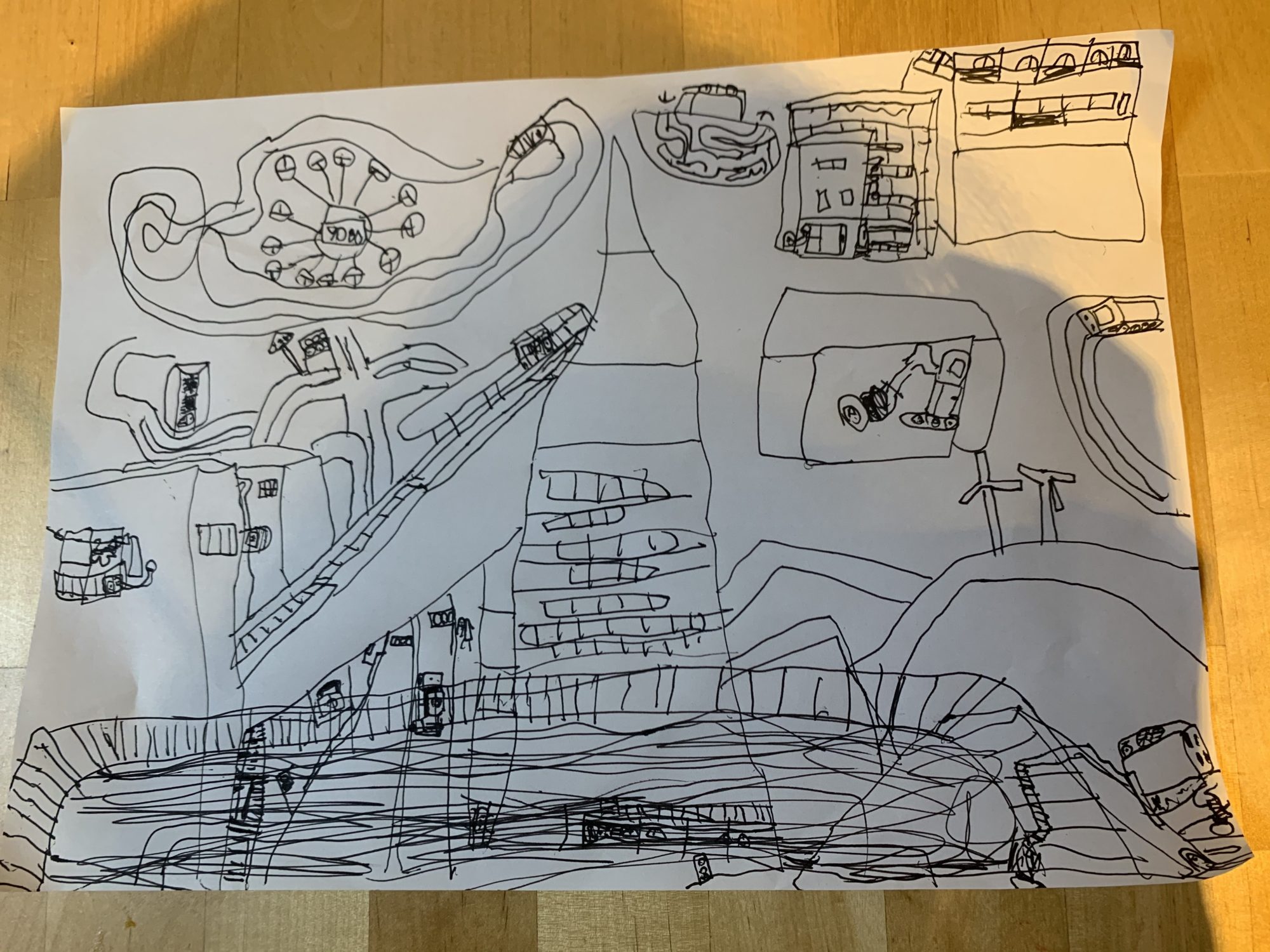 2022年5月27日 9:07 AM ペン一本でここまで世界を広げられるとは…。 とてもすてきな作品ですね 観覧車、電車、ビル、迷路、、、 ジェットコースターも走っているのかな? たかとさんが「こんな景色が見えたら最高だな~」と想像を膨らませながら、とても楽しんで描いていることが、作品からつたわってきます。 ログインして返信する ↓