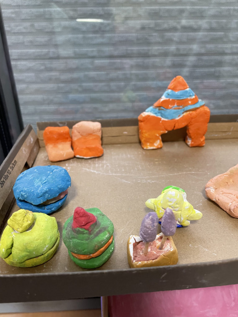 かぐは、ねんどでつくるのがむずかしかったけど