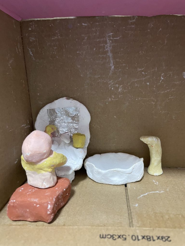 洗面所の細かい鏡や蛇口、コップの部分まで作られてて、びっくりしました!!すごい。キラキラの鏡もとっても素敵!!