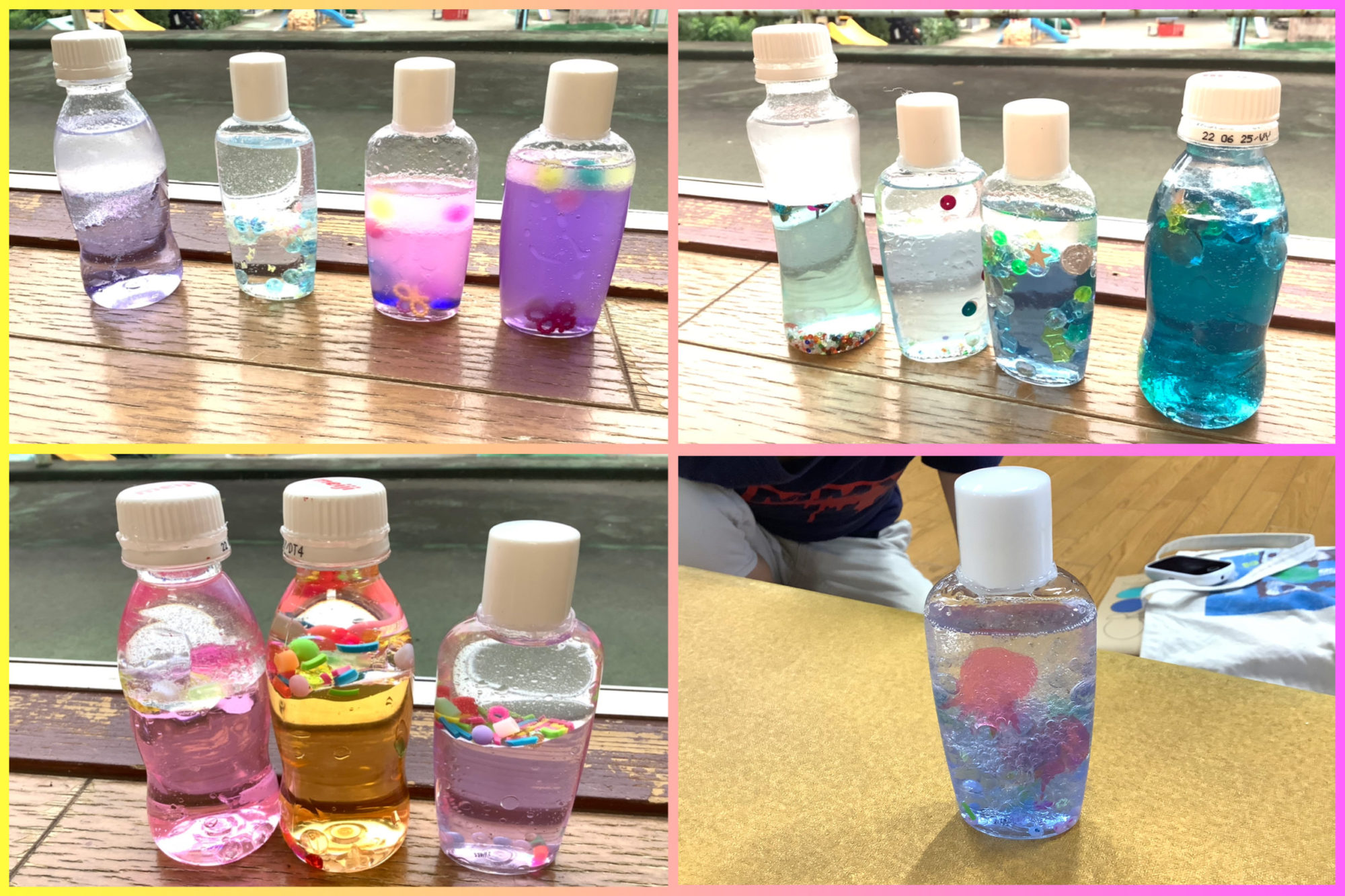 好きな色の色水を作って キラキラボトルにしました!