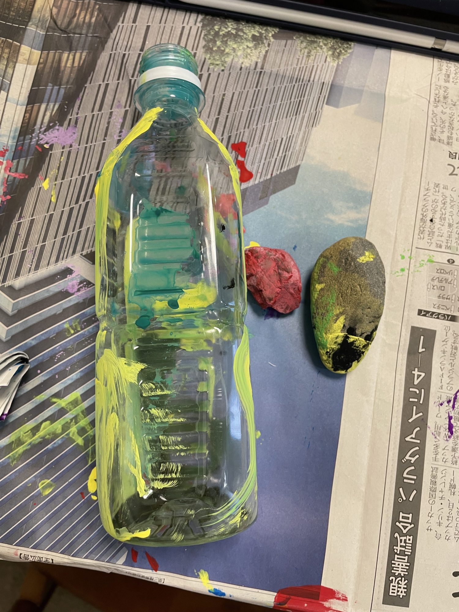 ペットボトルや石、スケッチブックにものびのび描かれてますね!