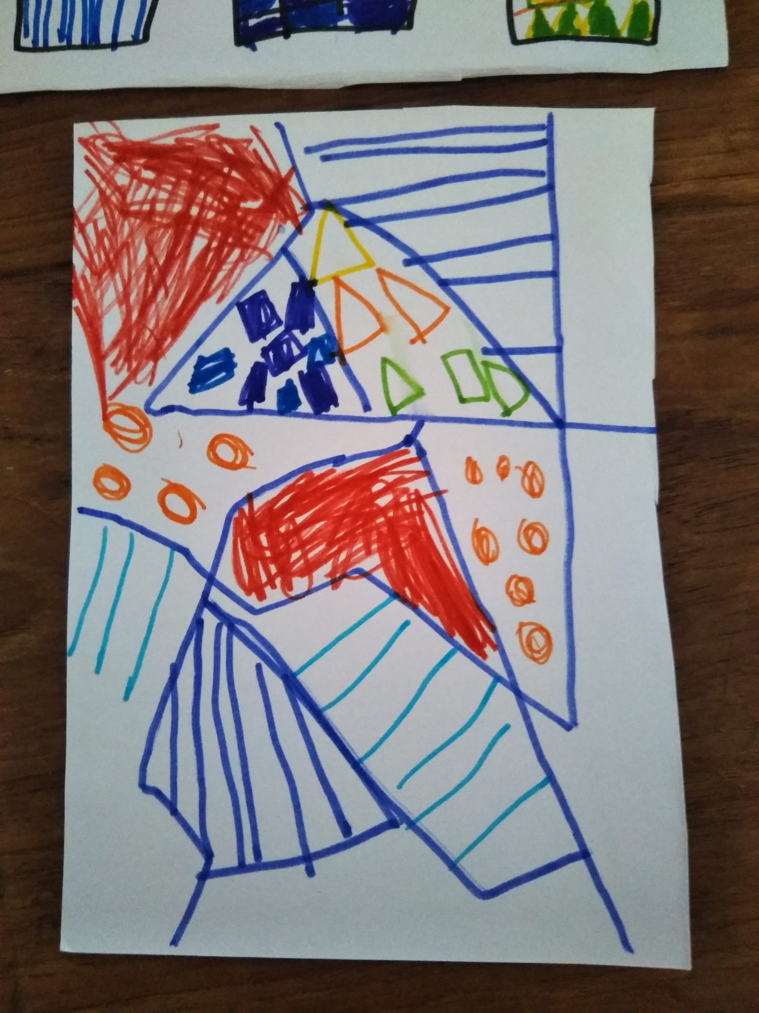 いろんな色のサインペンでたくさんの模様をかいていて見ていてすごく楽しい絵ですね😍