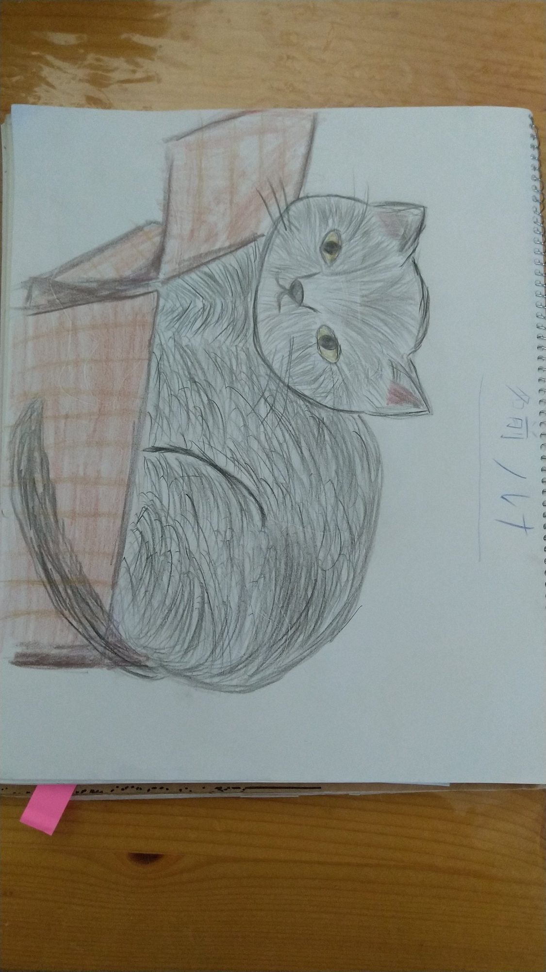 毛並みも良く描けているし、段ボールの奥行とパースの取り方。