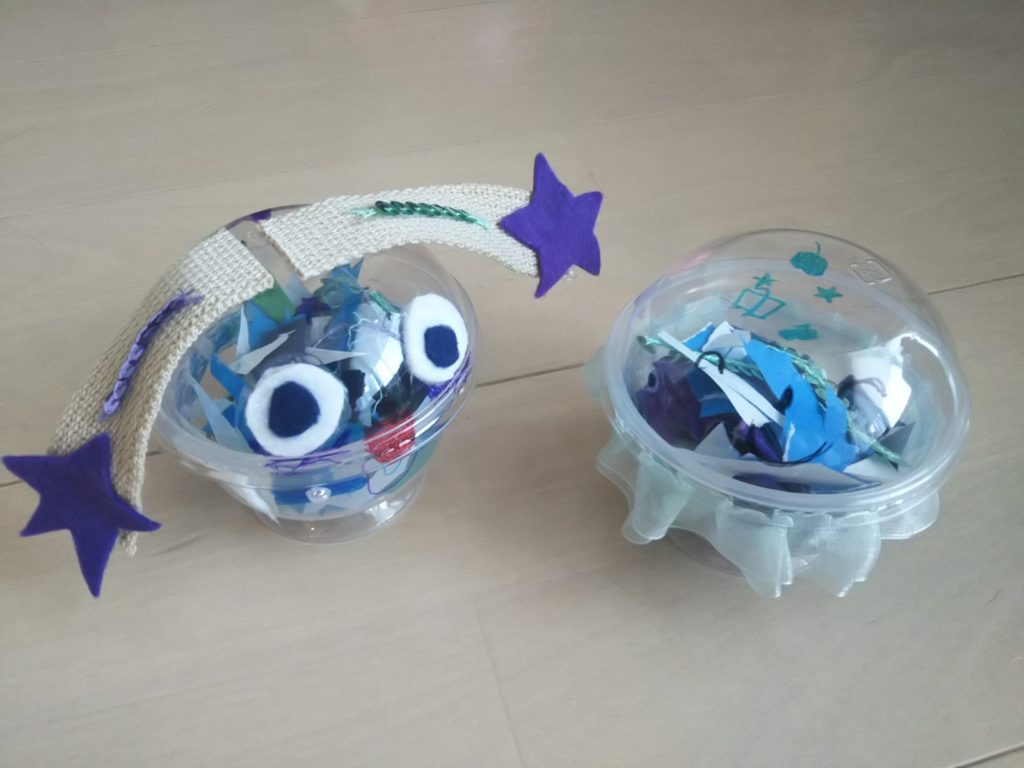 プリンのカップとおりがみとフェルトと、、、