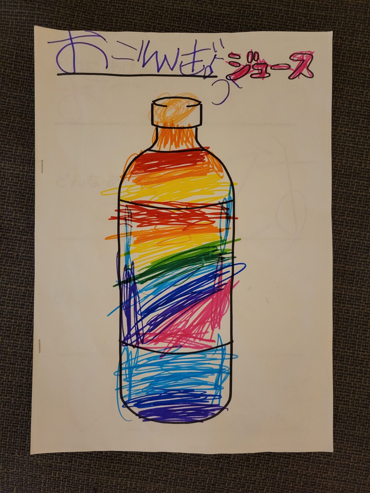 いろんな色を使ってきれいなジュースになったね!上が赤とかオレンジで、下が青とか紫でちがいがあるのもきれい✨
