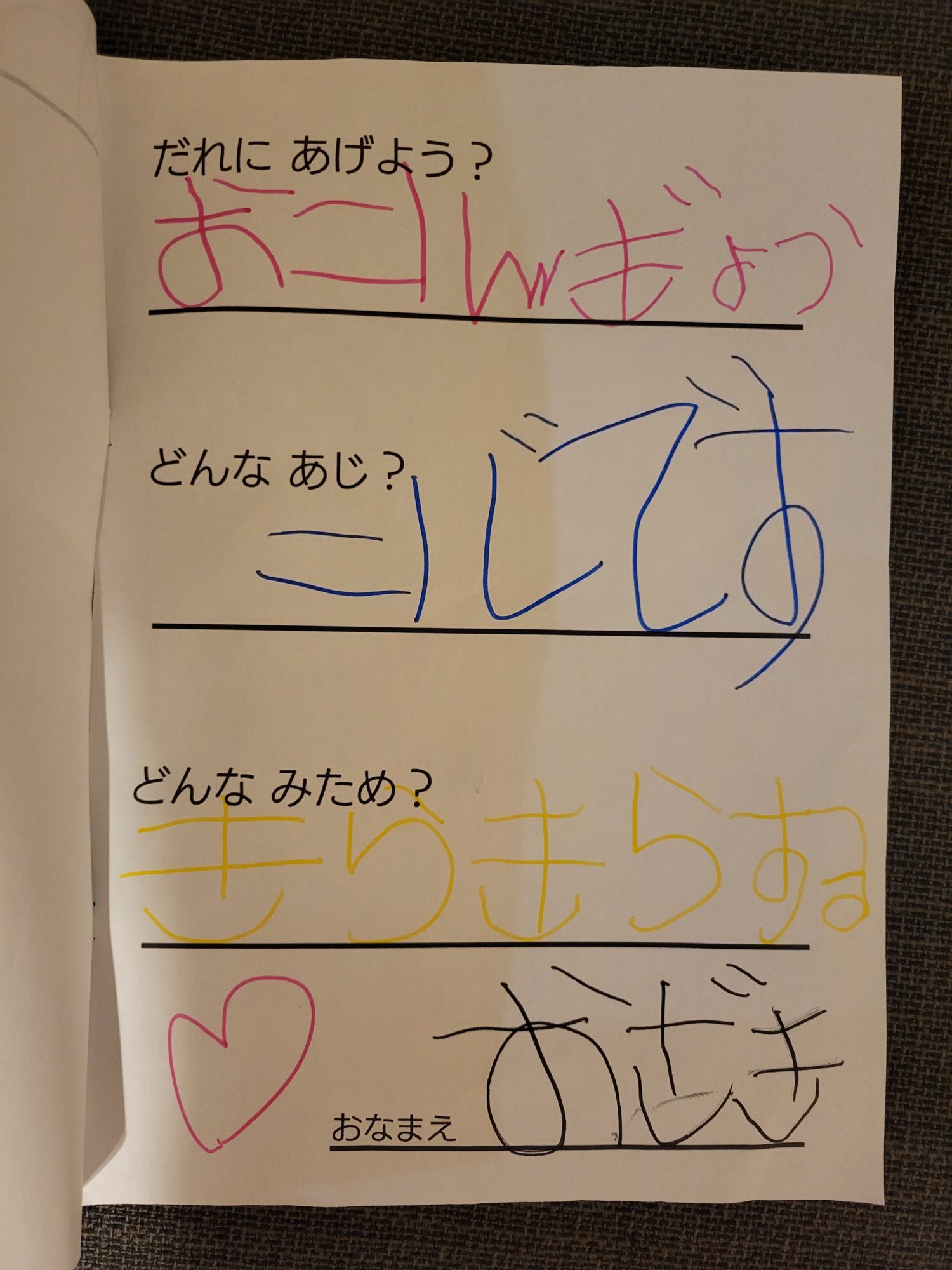 せんせいジュースは好みを質問してせんせいに合わせた内容になっていて意図が分かっているようで感心しました(笑)