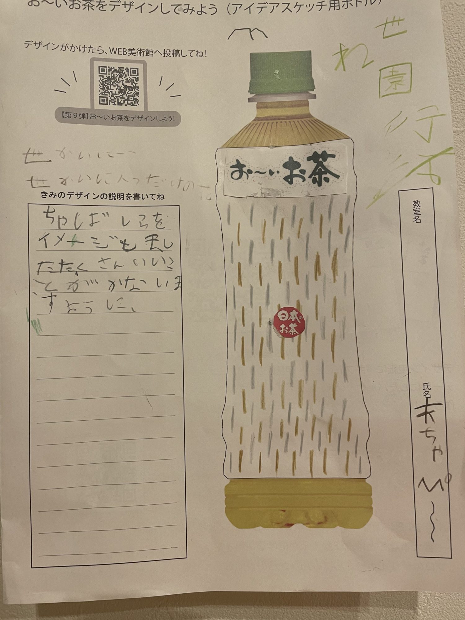茶柱が立つとラッキーだとおばあちゃんに聞いたことがあるので、茶柱がこんなに沢山立ったらラッキーが沢山だとおもってデザインしました!