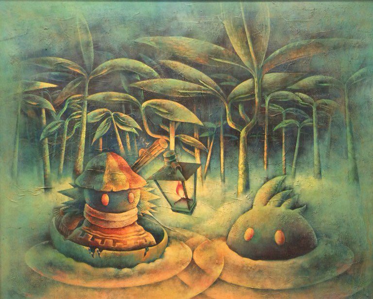 家の近くが山のため、こんな生き物がいたら楽しいだろうなぁと思う気持ちで、F100号のキャンバスにアクリル絵の具を使って描いてみました。