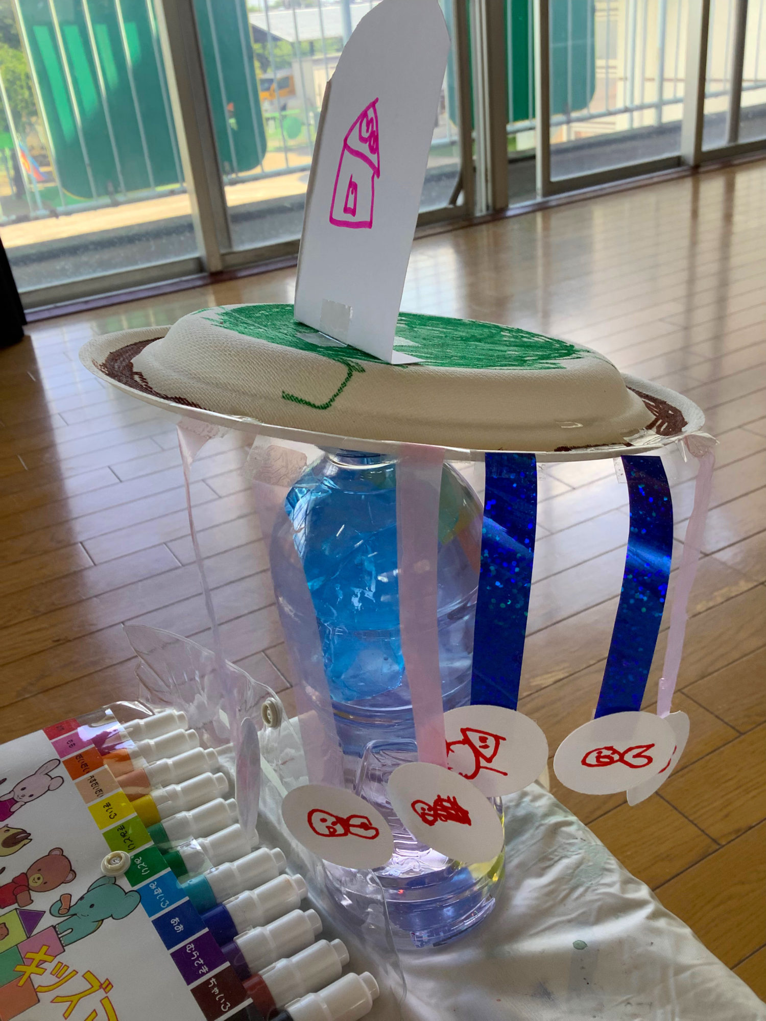 海の色、いろんな色のビニールを使っていてオーロラみたいに綺麗だね✨