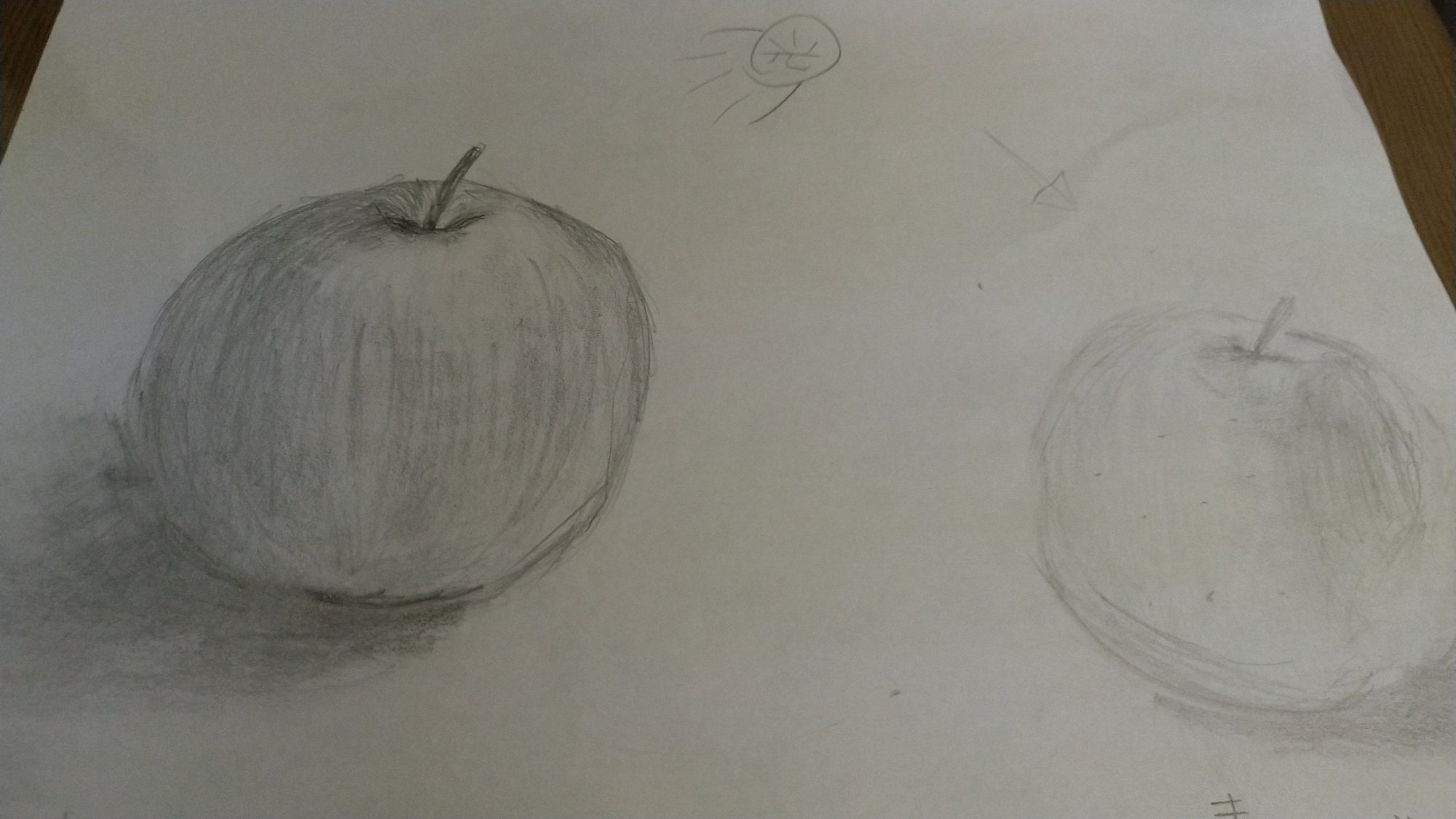 鉛筆の線で、カタチを出そうとしているところ、陰影のつけ方、グラデーション。