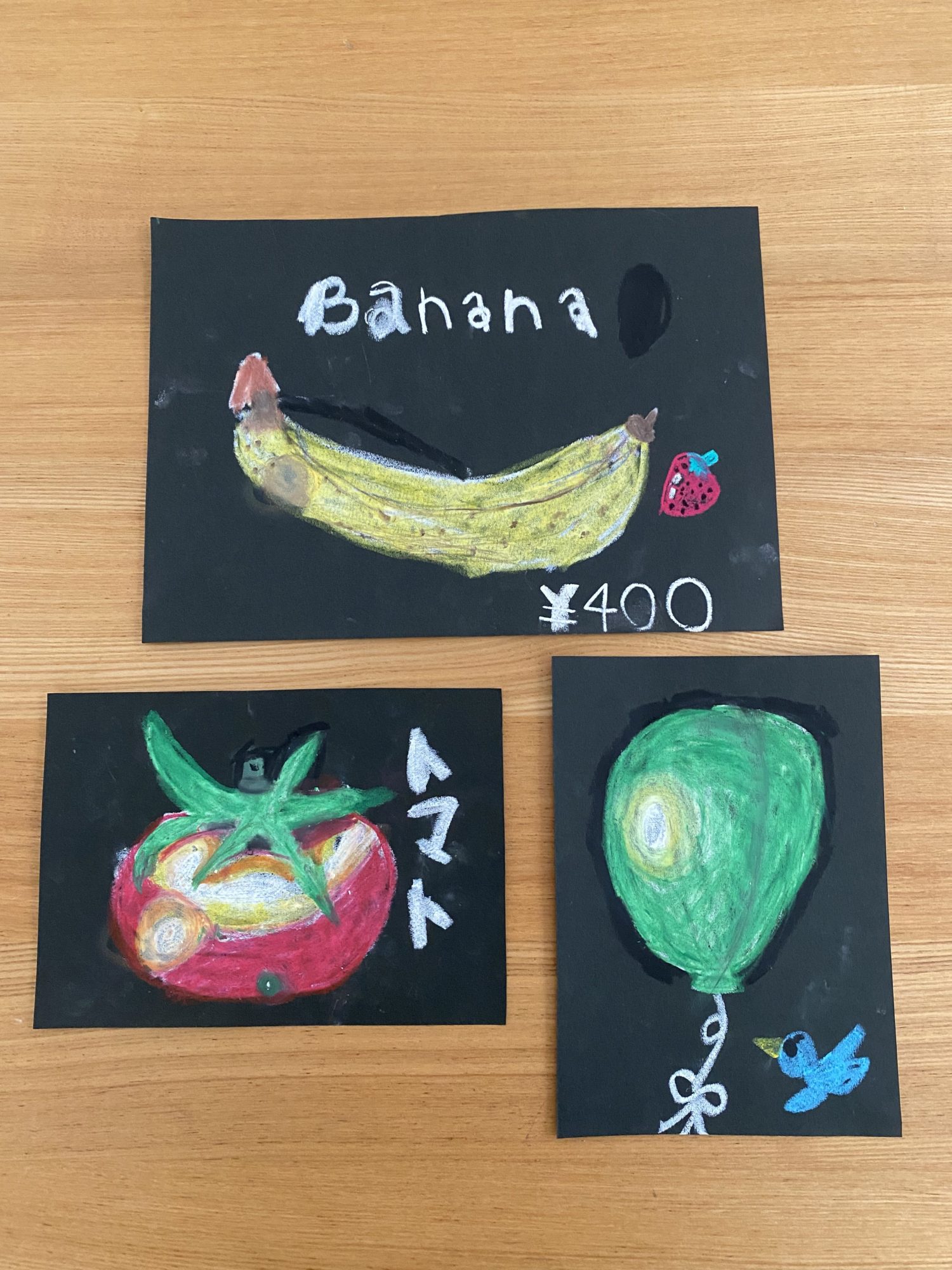 2022年7月25日 2:42 PM 光がとっても綺麗に描けてますね〜〜! 特にトマトがツヤツヤで、すごくみずみずしくておいしそうです✨ 風船も丸みを意識して描けていて、立体感があって良いです🎈 バナナは他のものと違って光っているところが少なかったかも知れないけれど、 皮にある細かいポツポツだったりとか、頭とお尻の部分の茶色の色味をそれぞれで変える工夫をしていたりだとか、、 とっっってもよく観察して描けています。 甘くて美味しそう💓400円で買って食べたいです☺️ 周りにいるいちごや鳥さんもキュート! ログインして返信する ↓