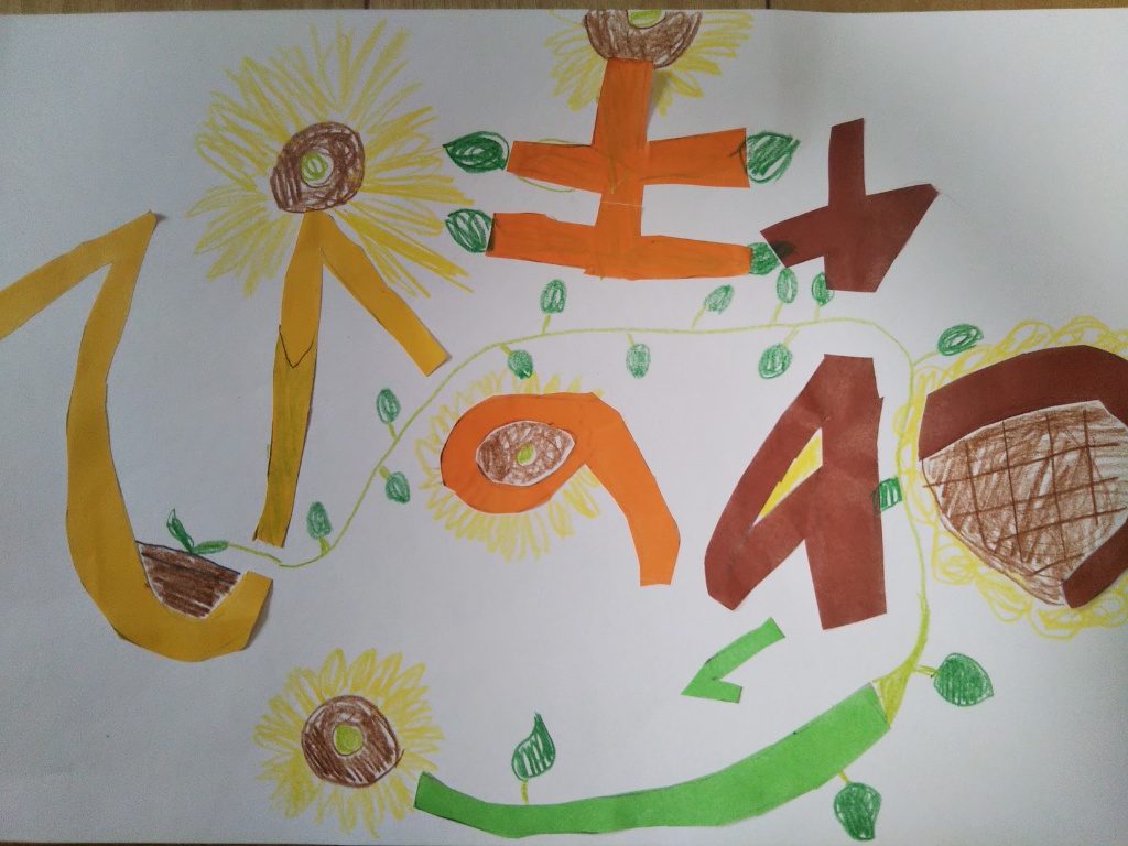 すごい!いろんなくふうで「ひまわり」の文字が作られてる!