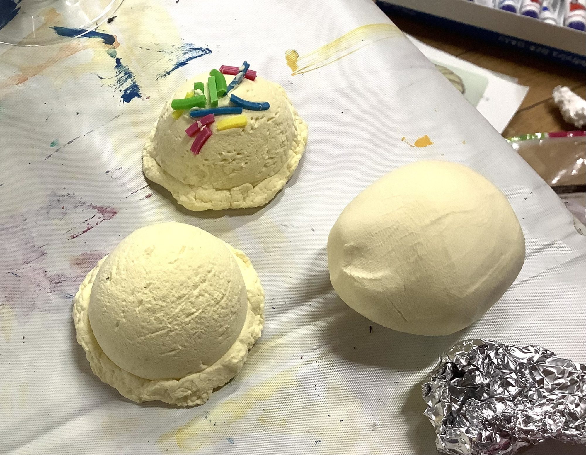 完成のパフェを目指して 紙粘土でバニラアイスを作っています!