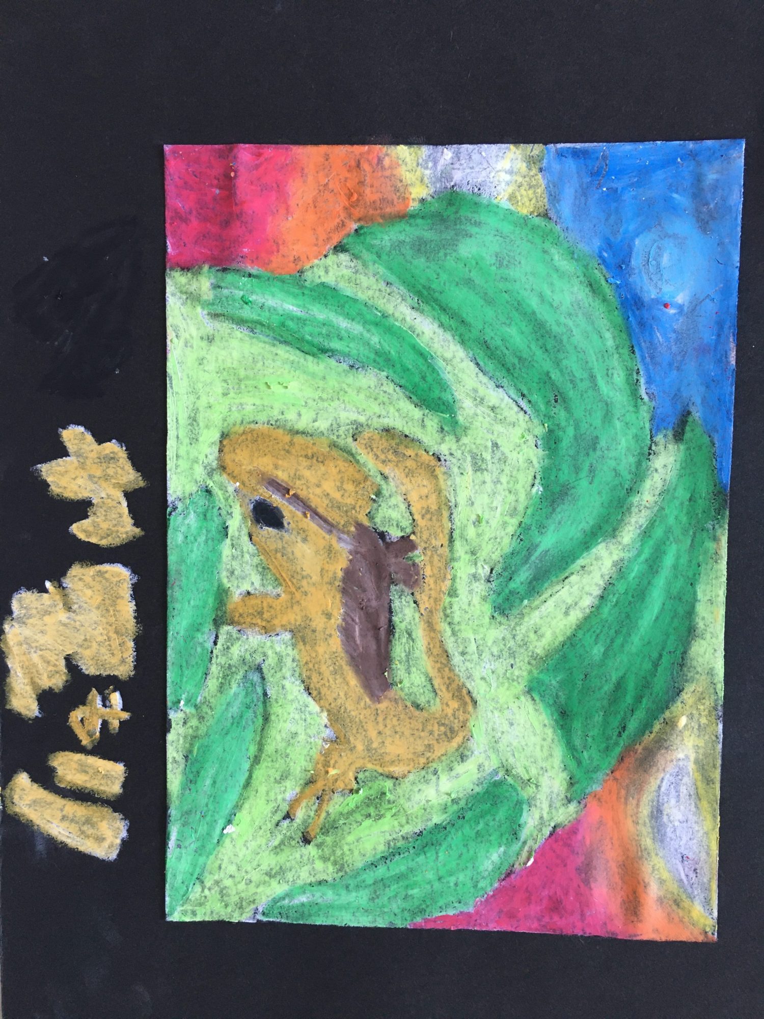 りおせんせい 先生2022年8月3日 9:03 AM よーく観察して色を作ってくれたんだね! ヤモリの色もすてきなんだけど、背景の色もとってもこだわってるね‼️👏✨ たくさん塗り重ねてくれたおかげで作品に立体感が出ていてカッコいいよ👍🌈 ログインして返信する ↓