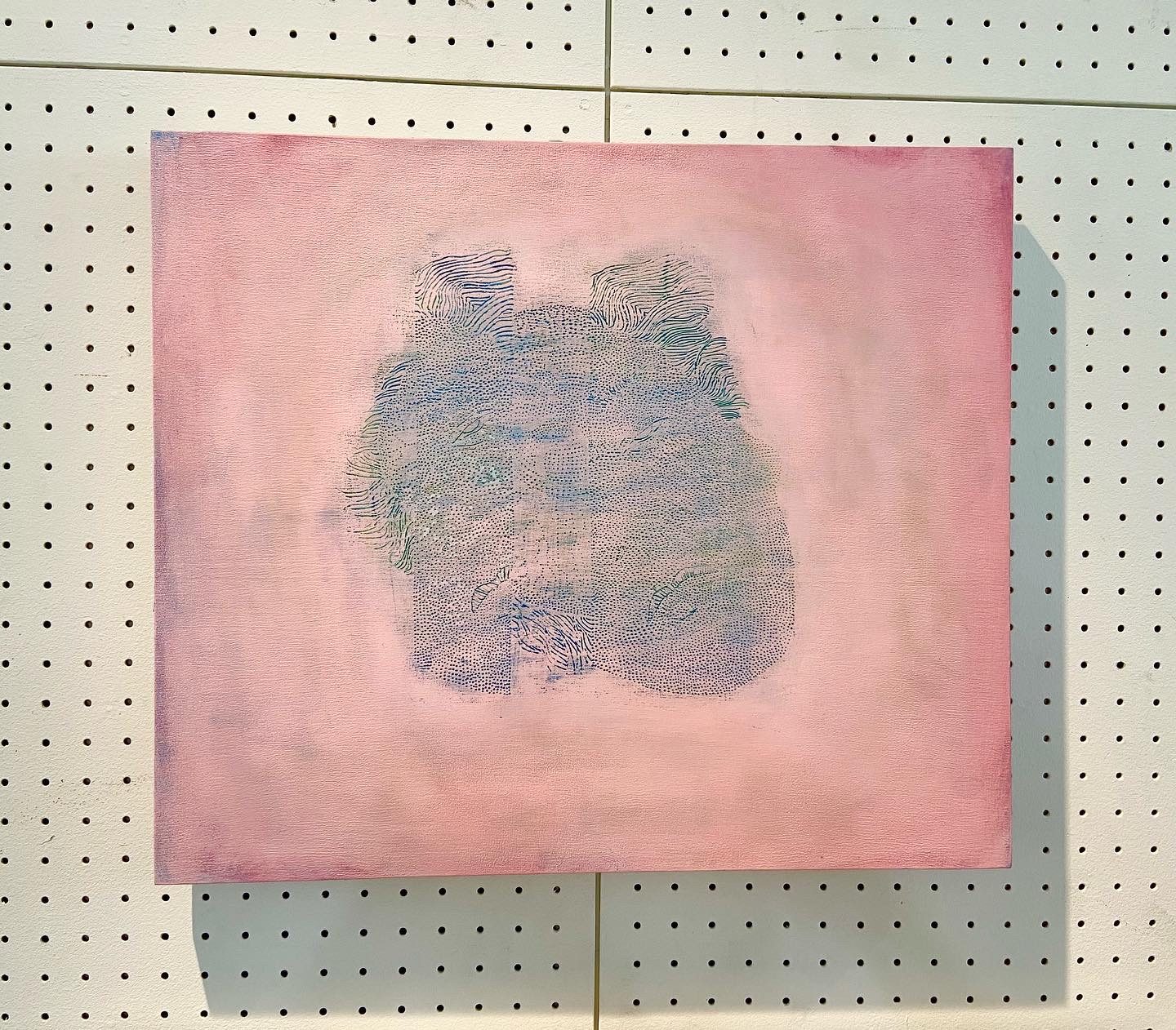 細かい穴を開けた所に絵の具を入れて描いてます。