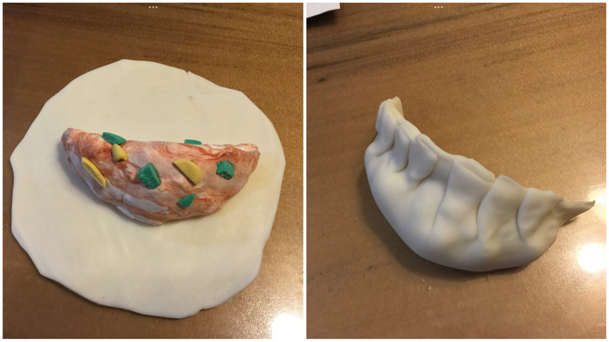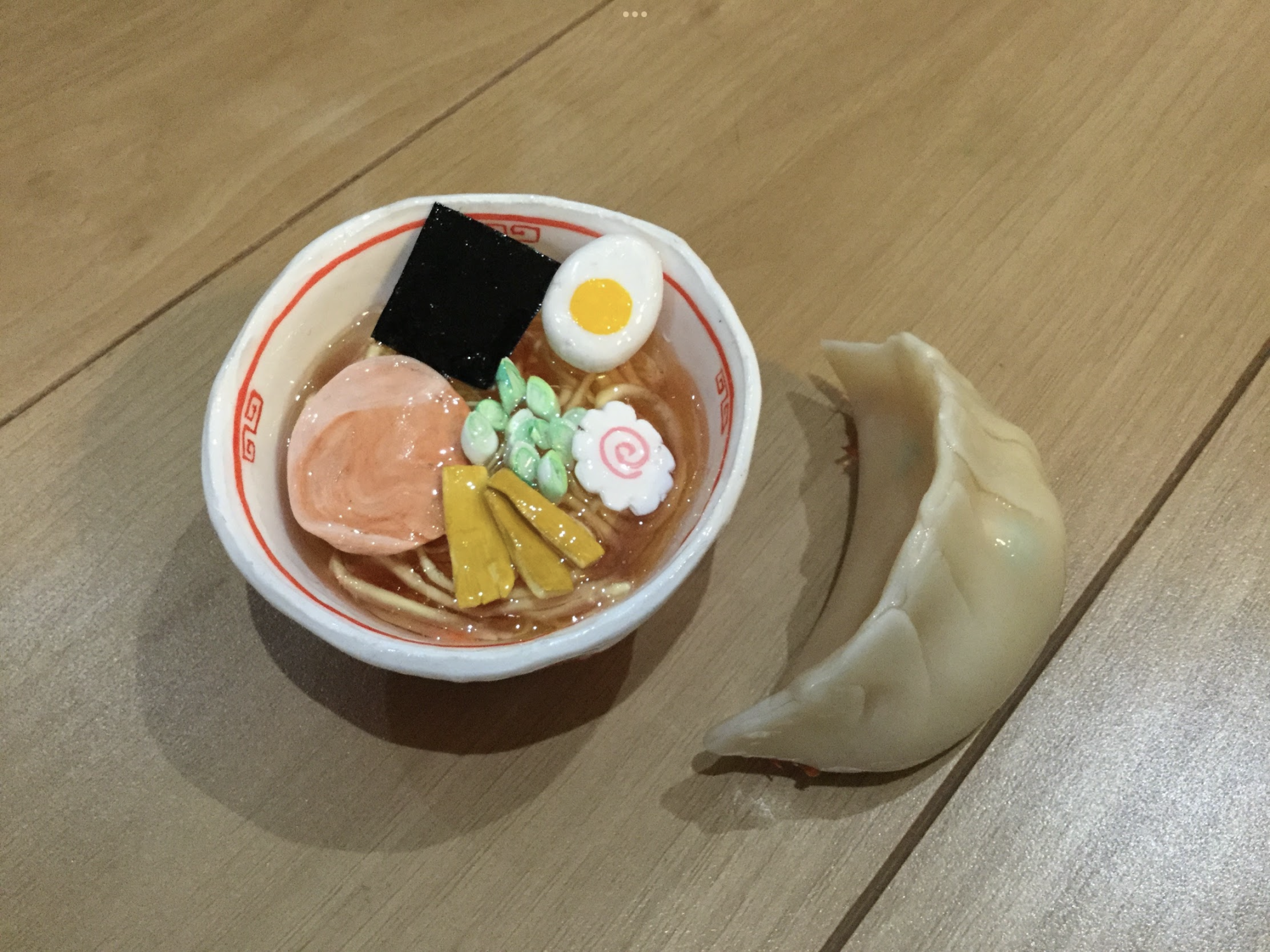 餃子は中身を透けさせたかったので樹脂粘土です(半透明)