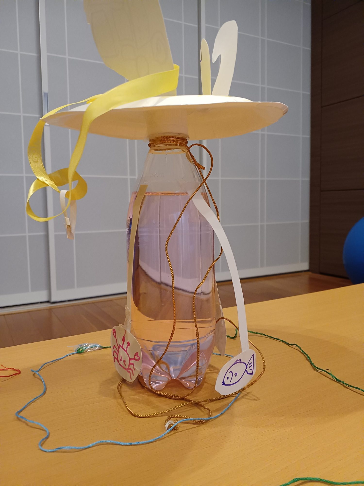 ペットボトルのうみよりももっとおおきいうみを ひもをつかってつくってくれたのかな?