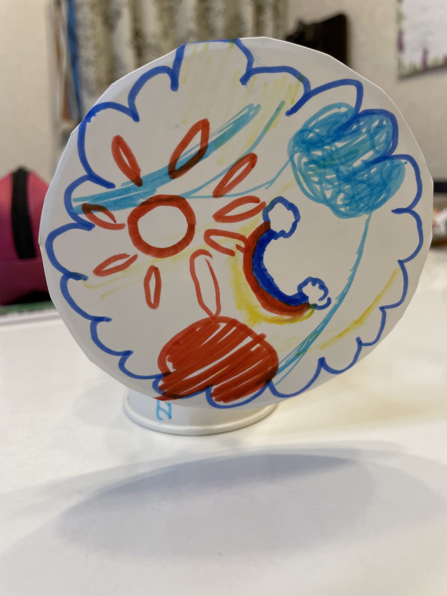 まわりにたいようなど もようをかきました。