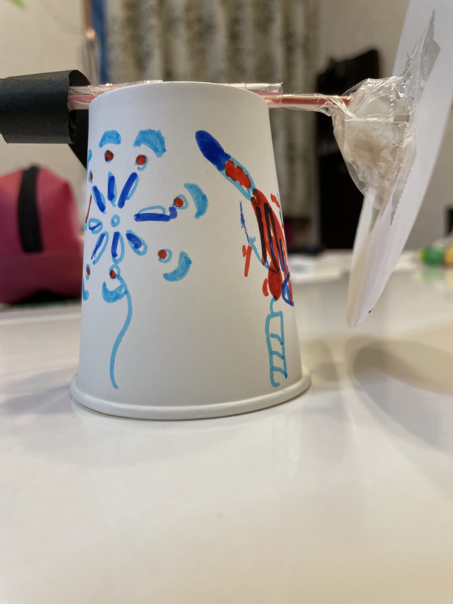 よこには 花火の絵をかきました。