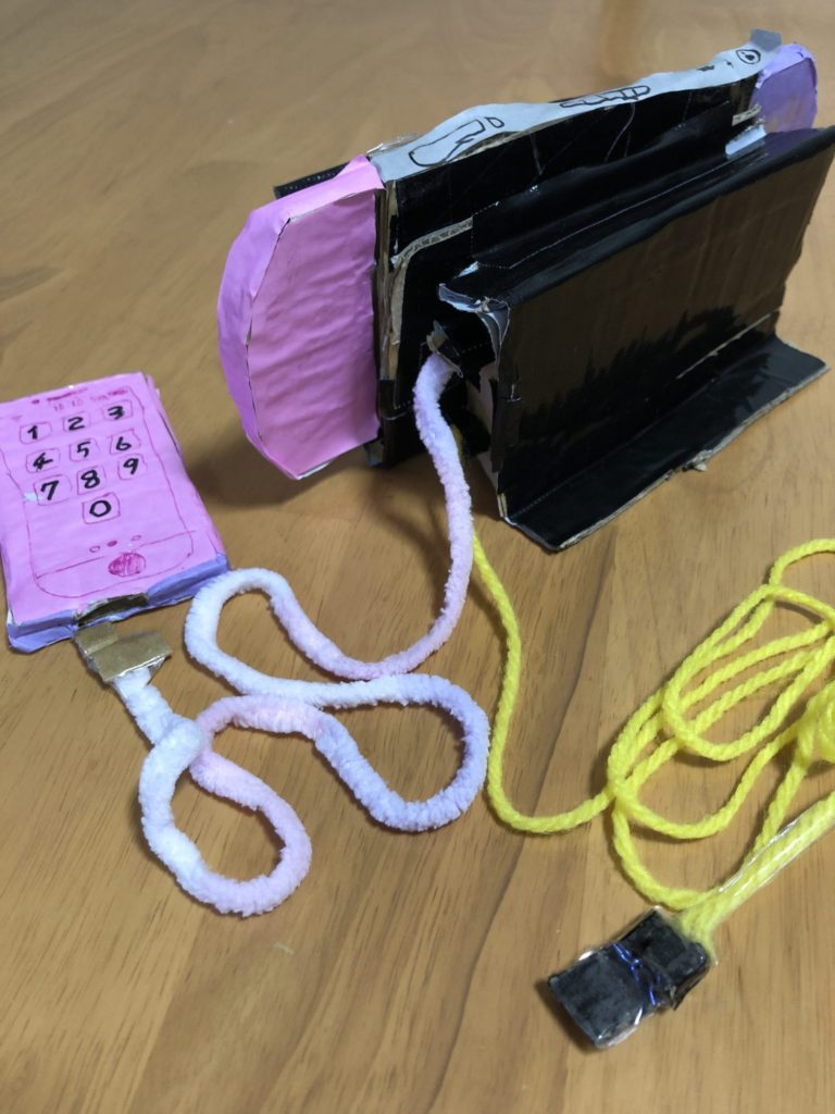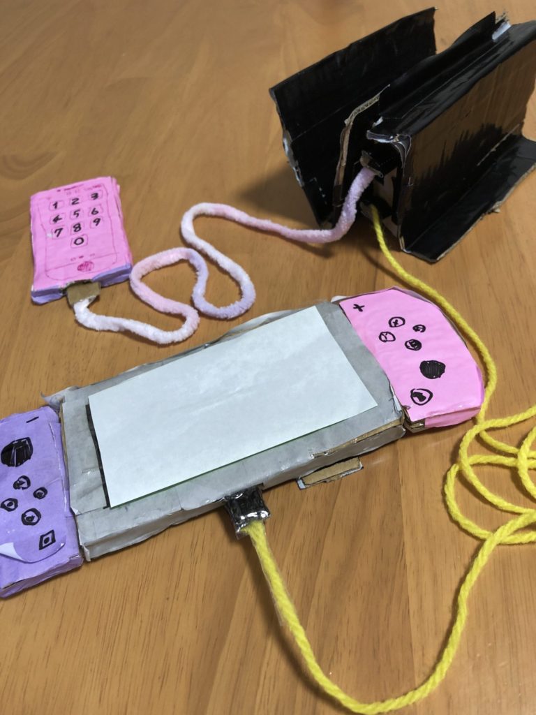 妹からのリクエストで、ダンボールを使って作りました。追加で電話機も。