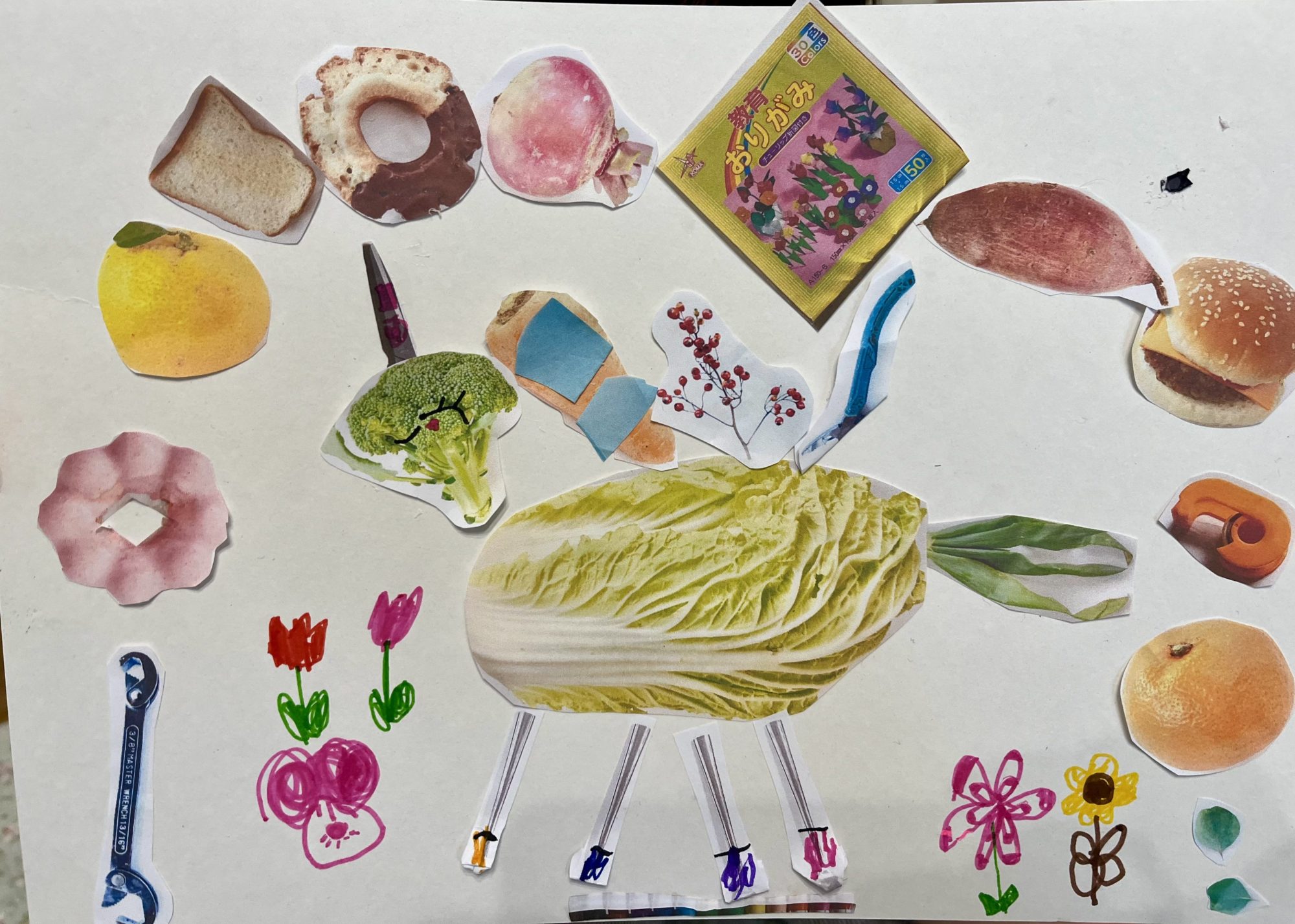 お花とかまわりのやさい、食べものもあってにぎやかで楽しそうなようすが伝わってくるステキな作品をありがとう✨