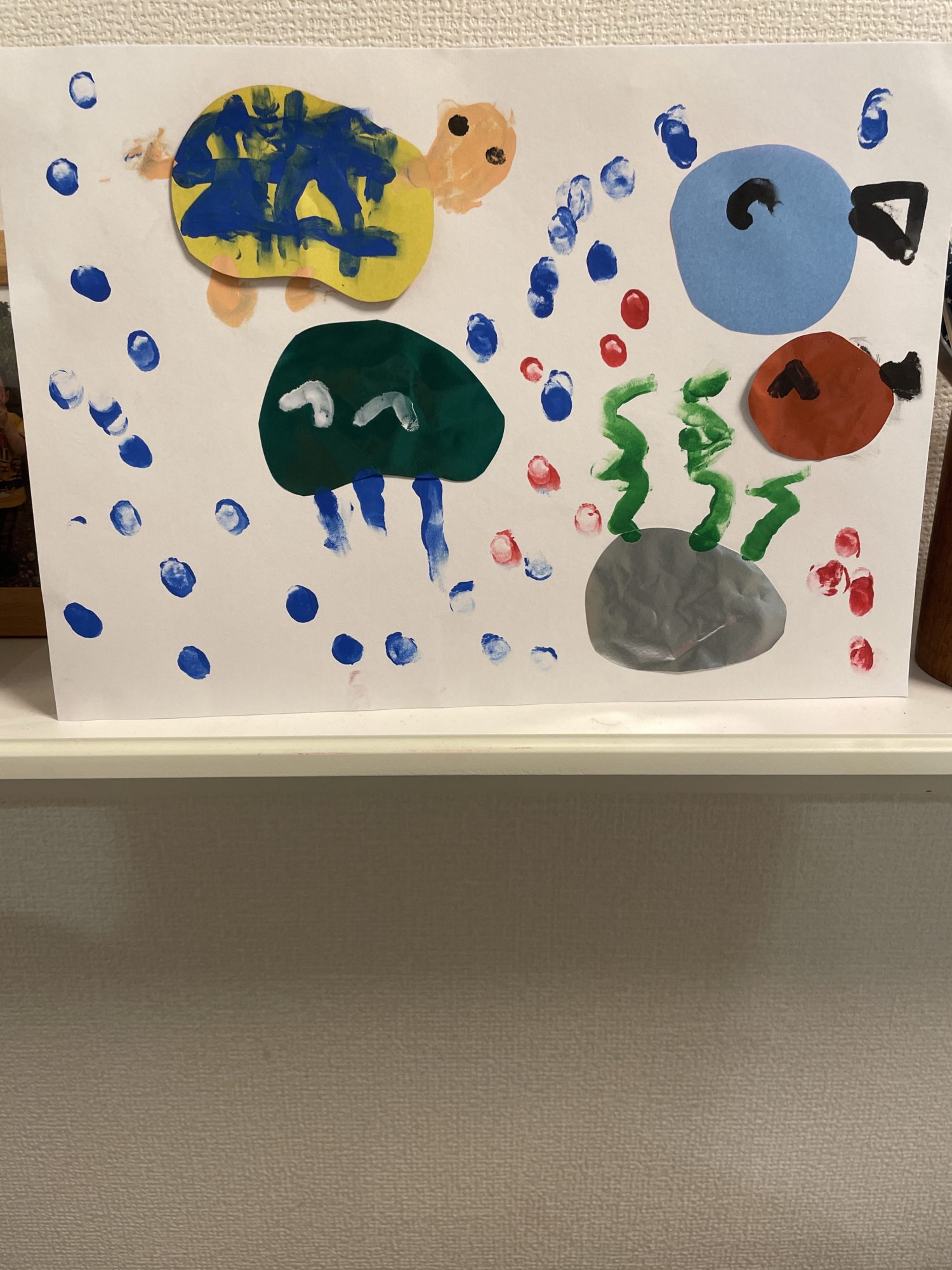 1枚目はすいぞくかん。すいぞくかんにはお魚や、かめやくらげが沢山。2枚目は指指した後に落書きしたよ。いくらちゃんかな?笑