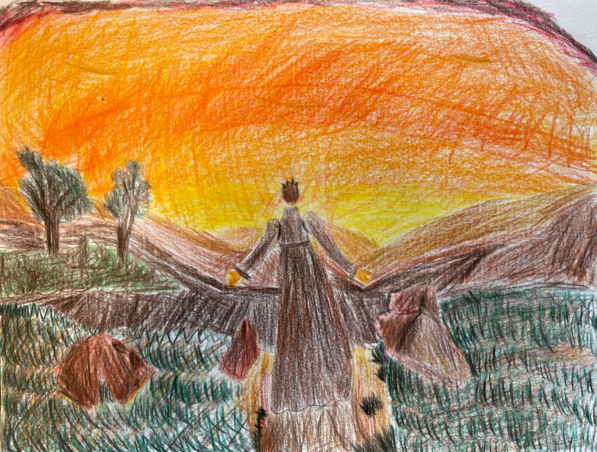 色鉛筆でガシガシガシガシ描いていたのでどんな風に絵がまとまるのかなと私も気になっていましたが、完成した絵を見たら頑張って色んな色を重ねたんだなと思いました👀