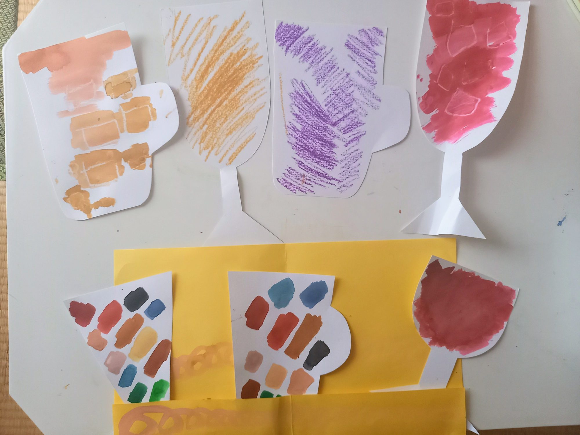 あゆ先生🍋 先生2022年9月13日 2:31 PM ハマっていたジュース作りをこんなに形にできるなんてステキ✨😍 いろんなジュースがあると “どれにしようかな” ってワクワクしちゃうな〜🥤 グラスもいろんな種類があるね!おしゃれなものから飲みやすそうなものまでそろっていてお店屋さんみたい! クレヨンで氷を描いて塗るとこんなにとうめいかんが出るんだね✨🧊 氷の「カラン コロン」ってきれいなさわやかな音が聞こえてきそう♪ ステキな作品をありがとう😊 ログインして返信する ↓