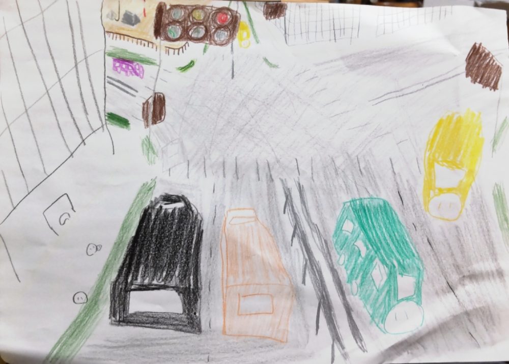 動いているのを描くのはとても難しいことなのですが、車が曲がるところまでとても細かく描いてあって